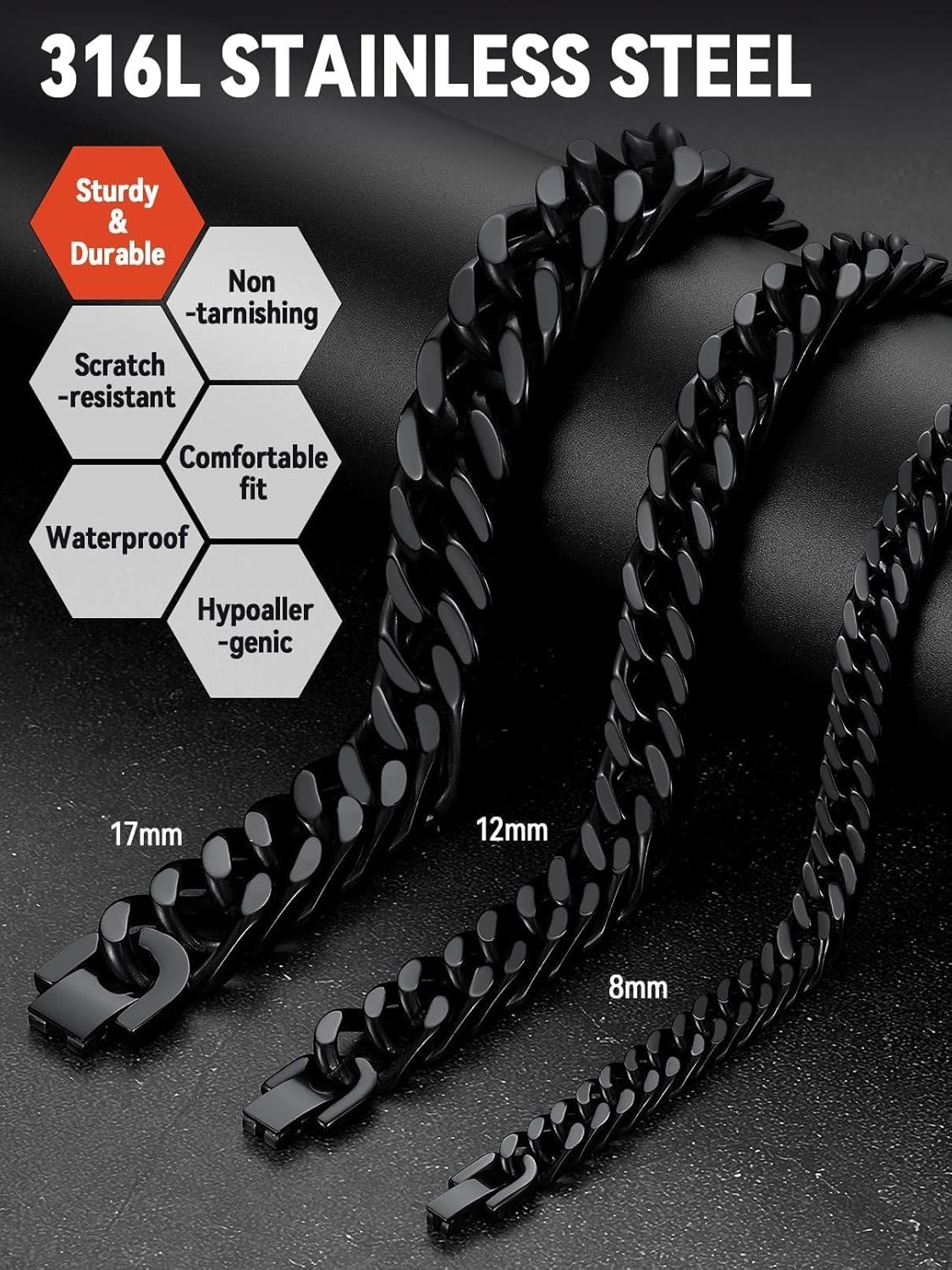 FaithHeart Cuban Link Bracelets for Men, 8/12/17mm Width Stainless Steel Wrist Bracelets Men’s Hip Hop Jewelry 7.4/8.2/9.1 Inch Length