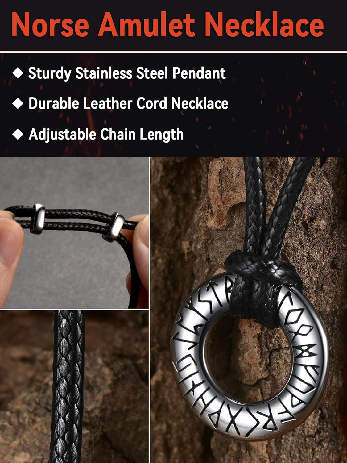 FaithHeart Norse Viking Rune Necklace with Adjustable Braided Leather Rope Chains/Stainless Steel Chains Nordic Vikings Jewelry with Gift Packaging