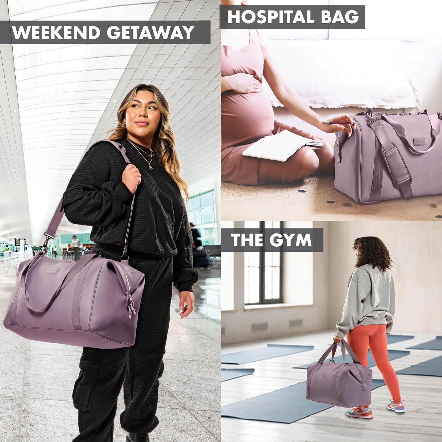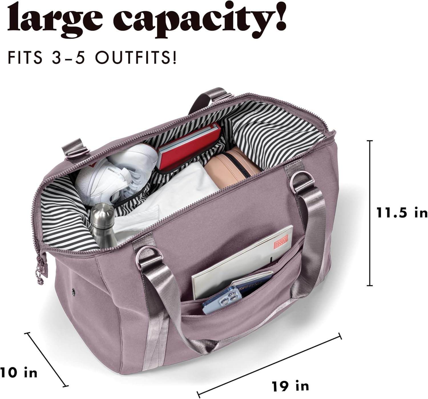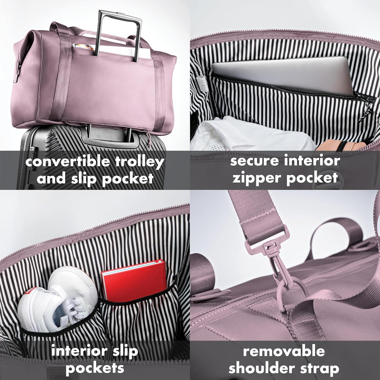 Fit & Fresh Premium Neoprene Weekender Bag, Travel Bag with Trolley Sleeve, Large Overnight Bag, Carry on Bag, Duffel Bags, Elderberry