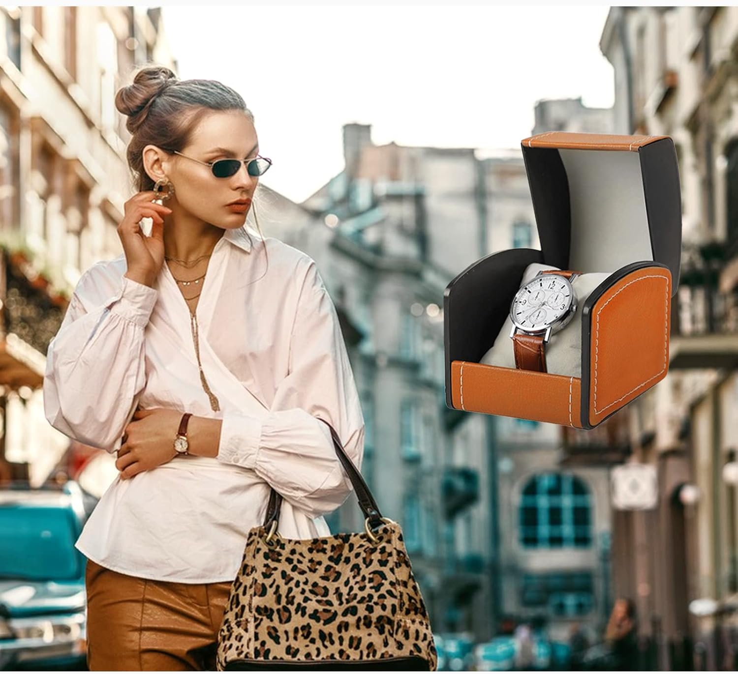 【Perfect Storage Box】:The small travel bag has two colours for you to choose from, black and brown. It is not only a watch storage box but also can be used as a jewellery box, gift box, watch packaging box, etc. It is suitable for home storage, jewellery store counters, clothing stores and other places.