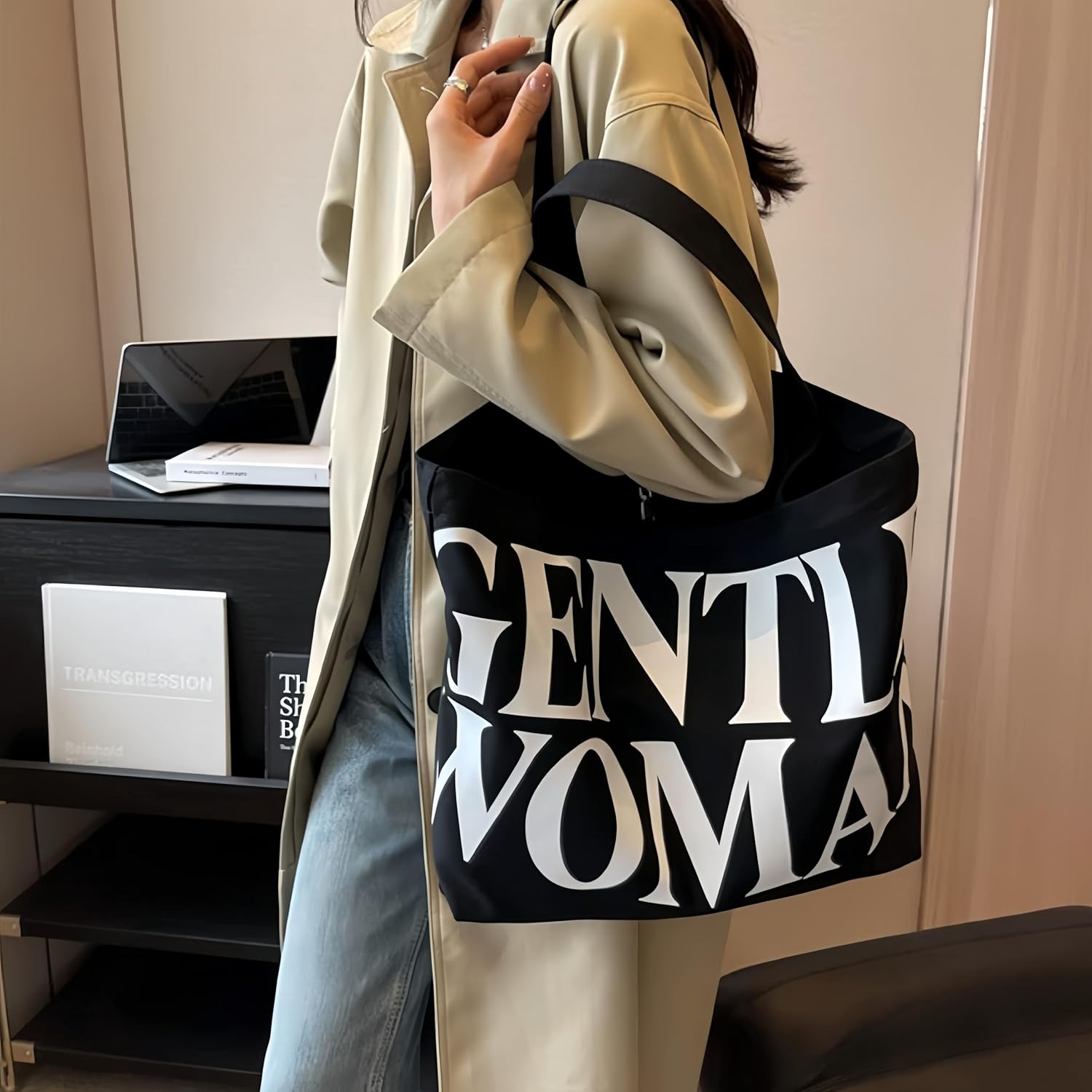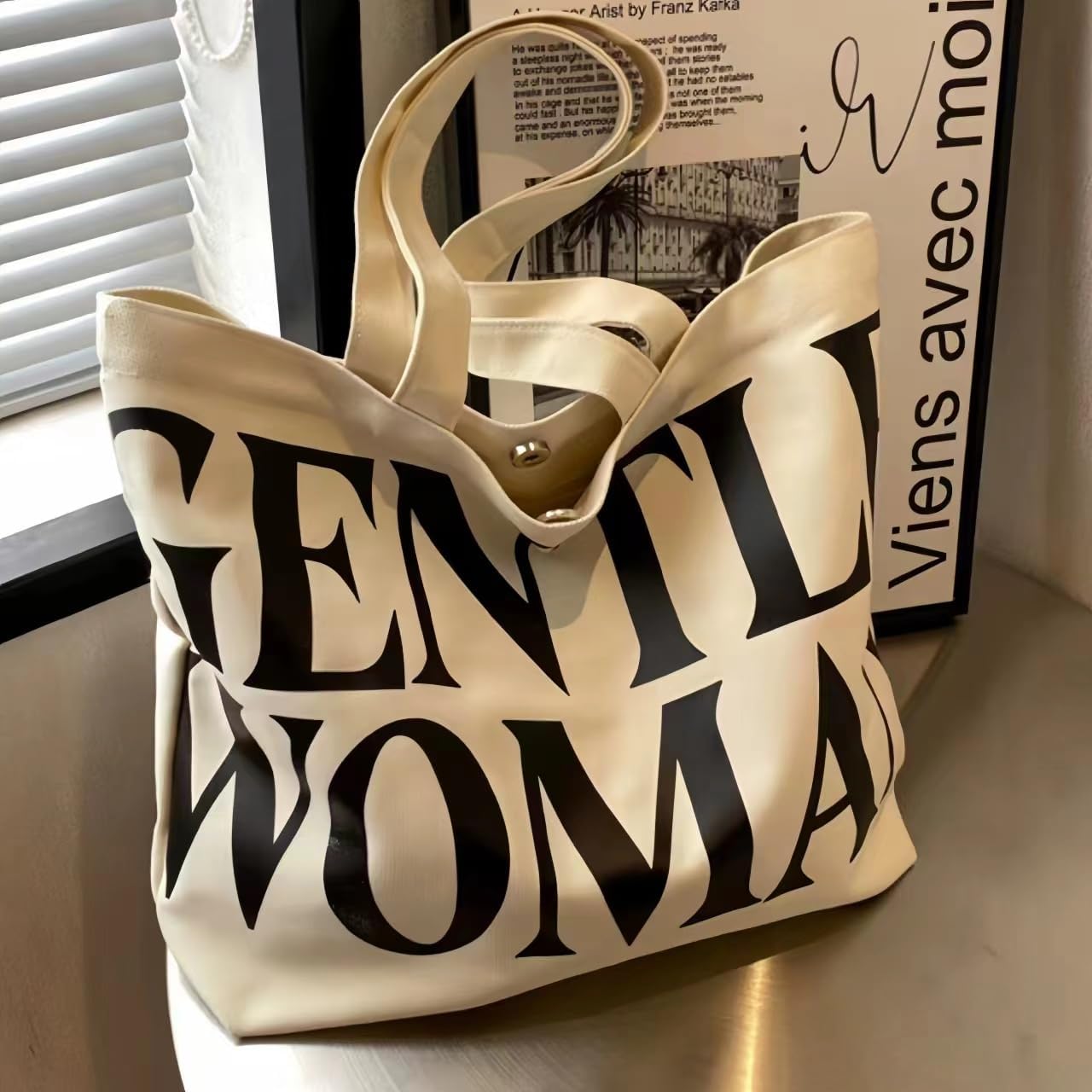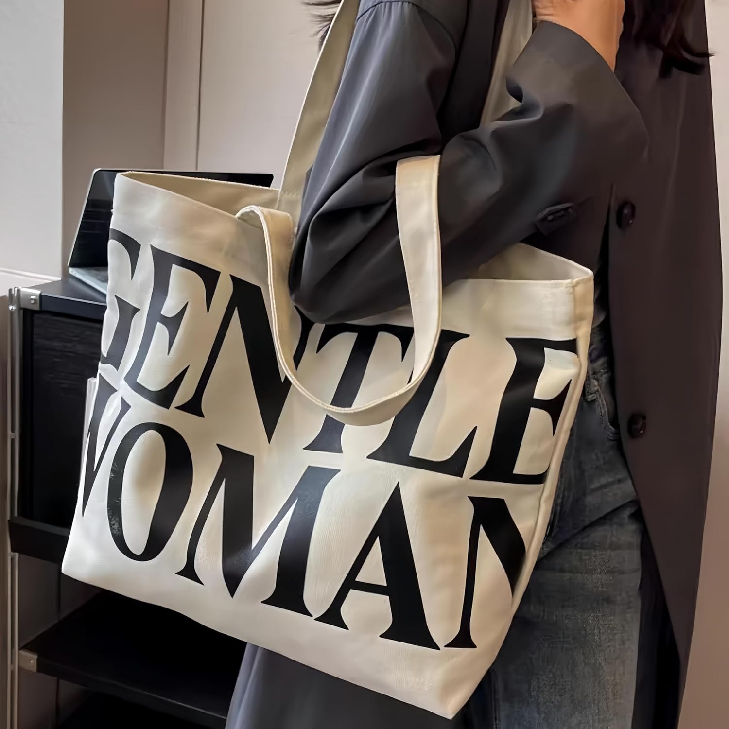Gentle Woman Tote Bag Canvas Handbags Handheld Shoulder Bag with Zipper Purse Compartment for School Office Travel