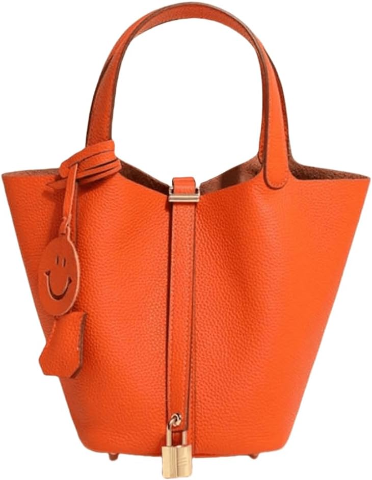 Genuine Leather-Handbags,Bucket- with Lock,Clemence -Portable,fashion-Female Bag