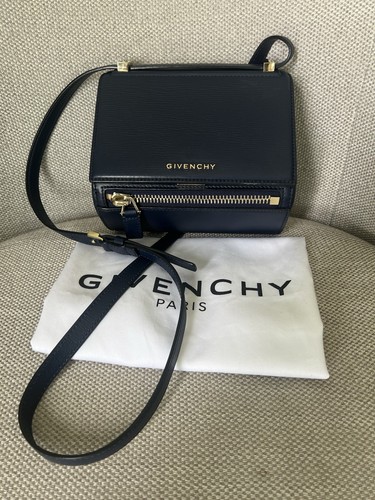 Givenchy Blue Grained Leather Pandora Box Crossbody Bag