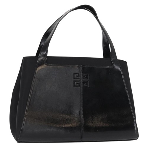 GIVENCHY Hand Bag Leather Black Silver Auth ka060
