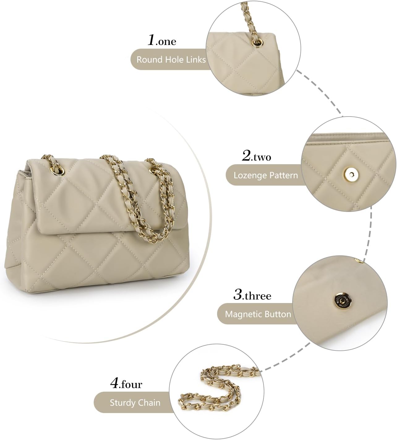 Gladdon Quilted Crossbody Purse for Women Small Ladies Shoulder Bags with Chain Trendy Clutch Purses Cute Designer Bag