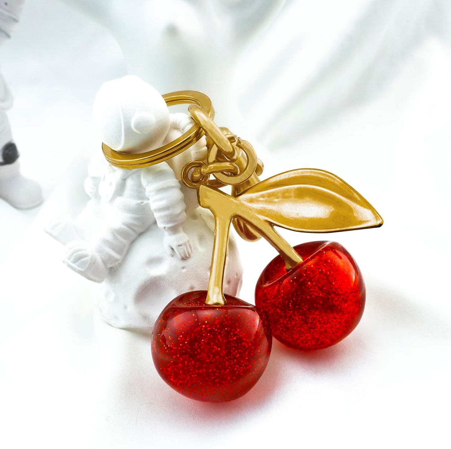 Gold Cherry Cute Cherry Charm for Purses and Bags, Red, Small