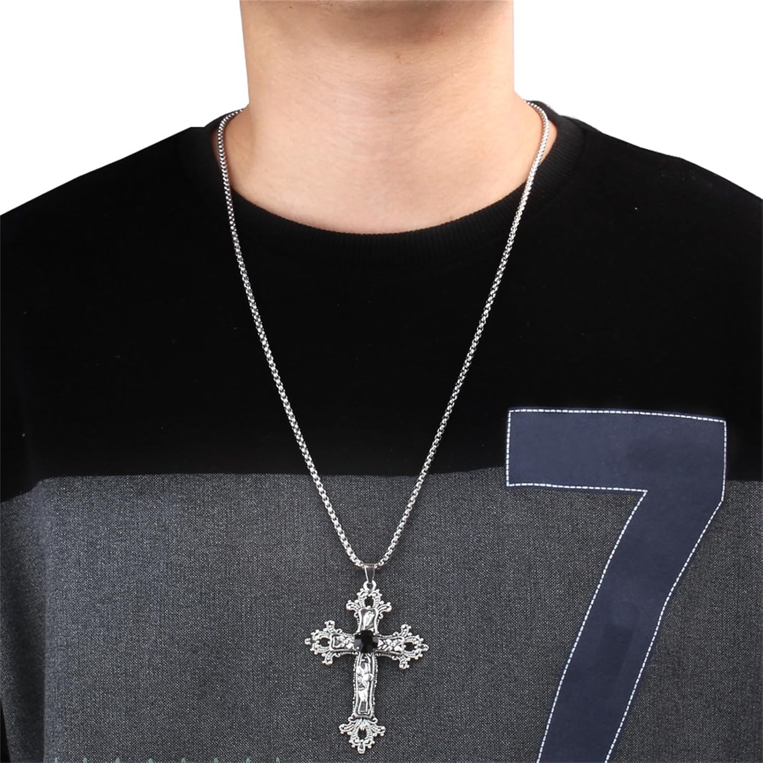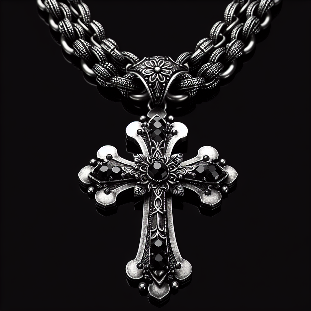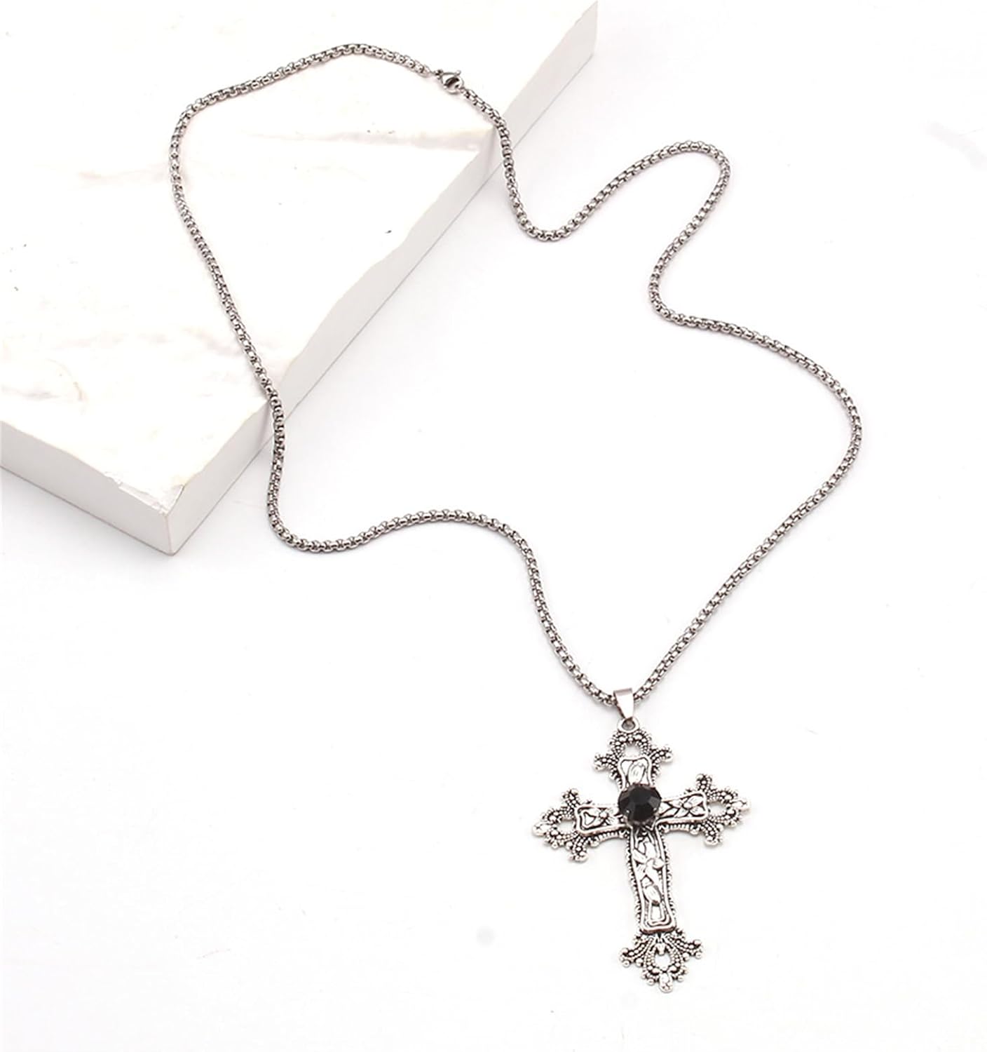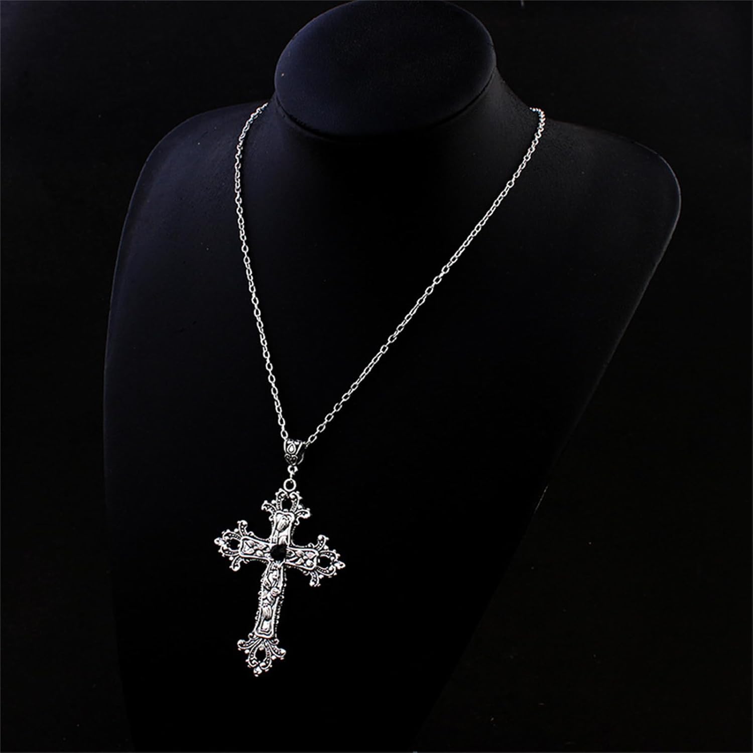 Gothic Cross Pendant Necklace Antiqued Silver Goth Punk Holy Cross Carved Flower Chic Black Crystal Rhinestone Christian Large Chain Necklace for Women Men Y2K Halloween Party Fashion Jewelry Gifts