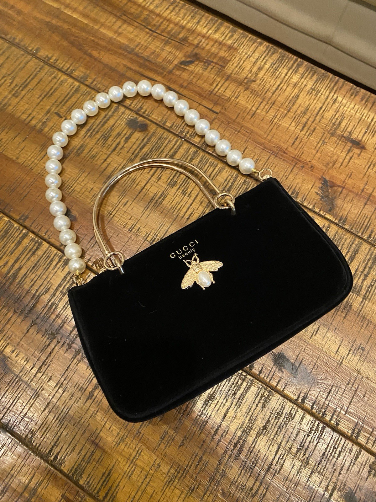 Gucci Beauty GWP Pouch Black Velvet with pearl handle and chain