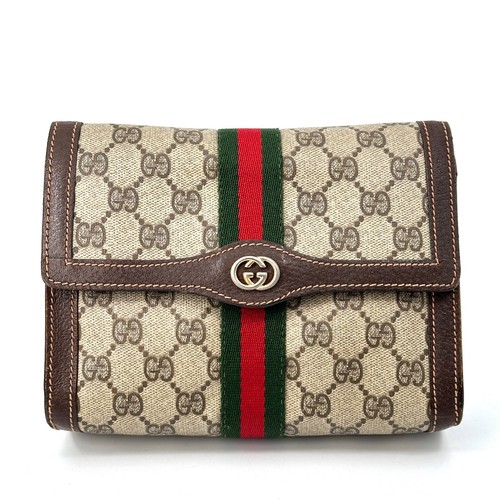 GUCCI Clutch Bag Sherry Line Flap PARFUM GG PVC Leather Made In Italy Auth