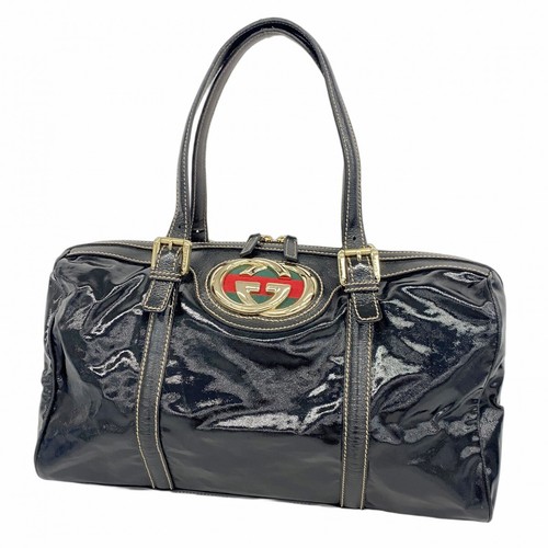 GUCCI Hand Bag Interlocking G 170010 Leather Black Champagne Gold Hardware 34893