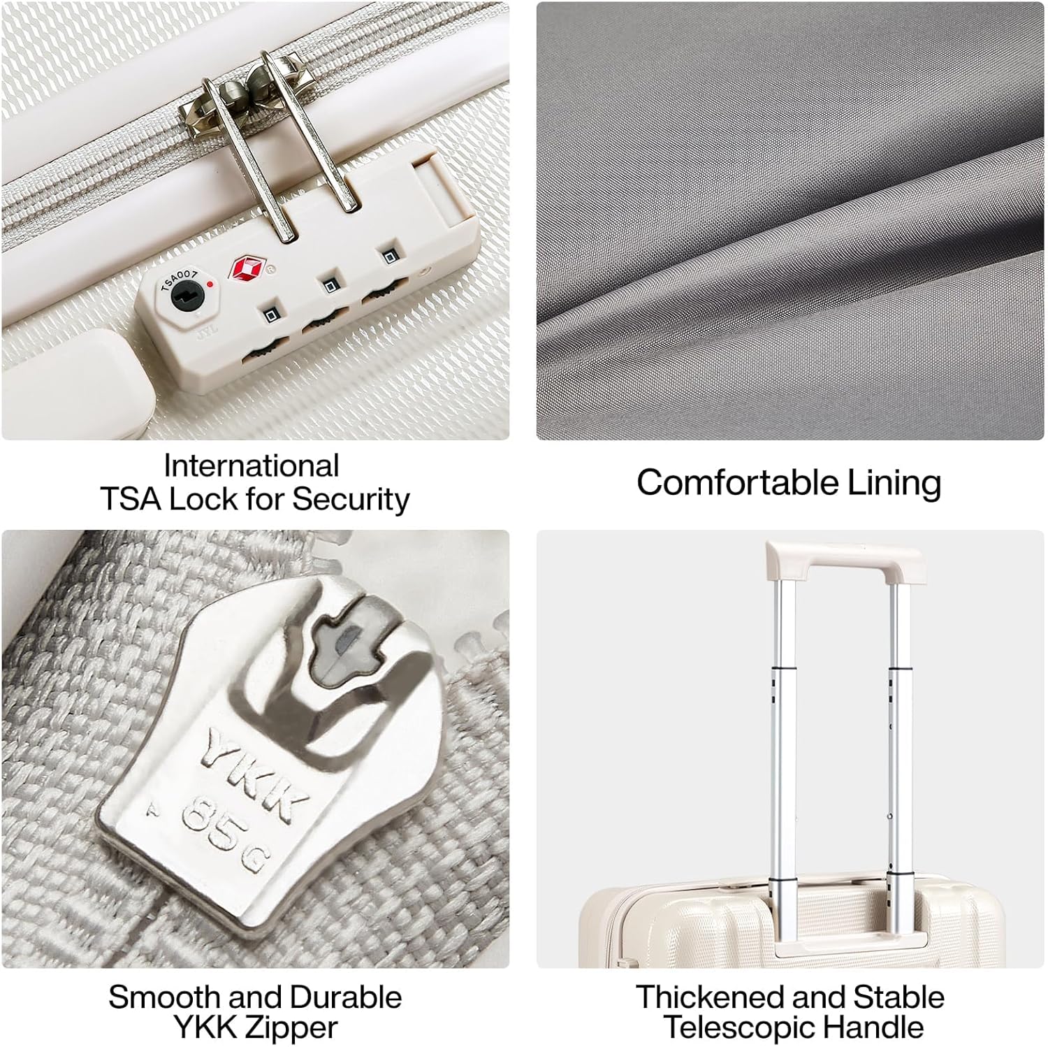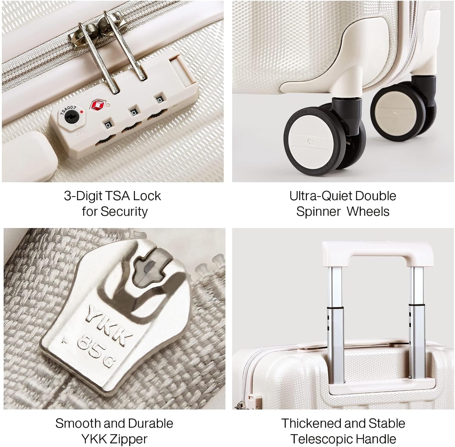 Hanke 20 Inch Carry On Luggage 22x14x9 Airline Approved Lightweight PC Hard Shell Suitcases with Wheels Travel Luggage Bag Rolling Suitcase for Womem Men Weekender(Ivory White)