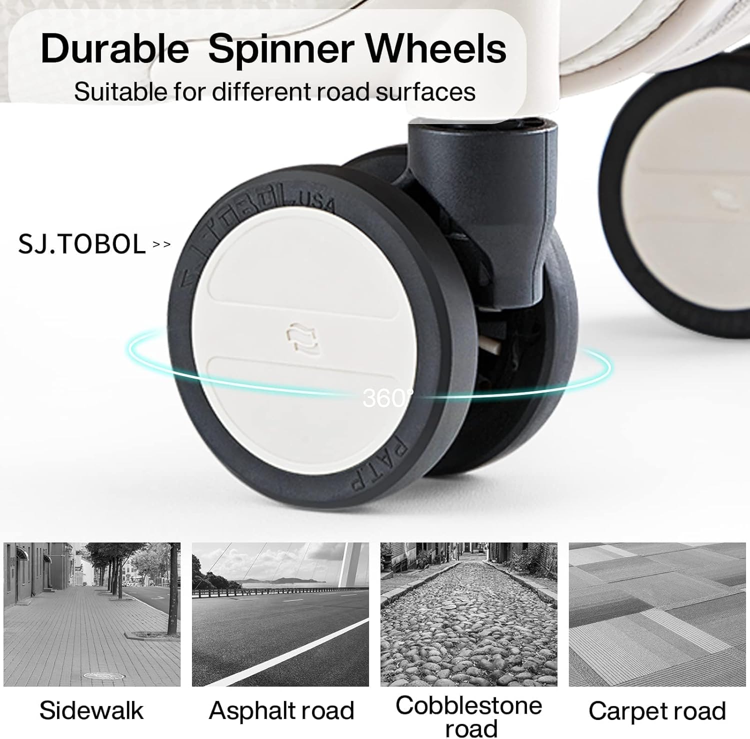 【High Quality Accessories】Durable spinner wheels,It is composed of precision shaft center and thickened TPE wheel skin, which is very wear-resistant,quieter and has strong bearing capacity, It is applicable to different roads such as cobblestone road and carpet road. Smooth and durable 5-strand reinforced explosion-proof zipper reverse coil prevents burst zipper. Combination lock is safe and convenient. Ergonomics telescopic handle with multi-steps adjustment.