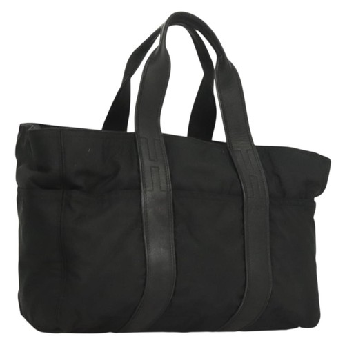 HERMES Akapu Luco MM Hand Bag Nylon Black Auth bs27350