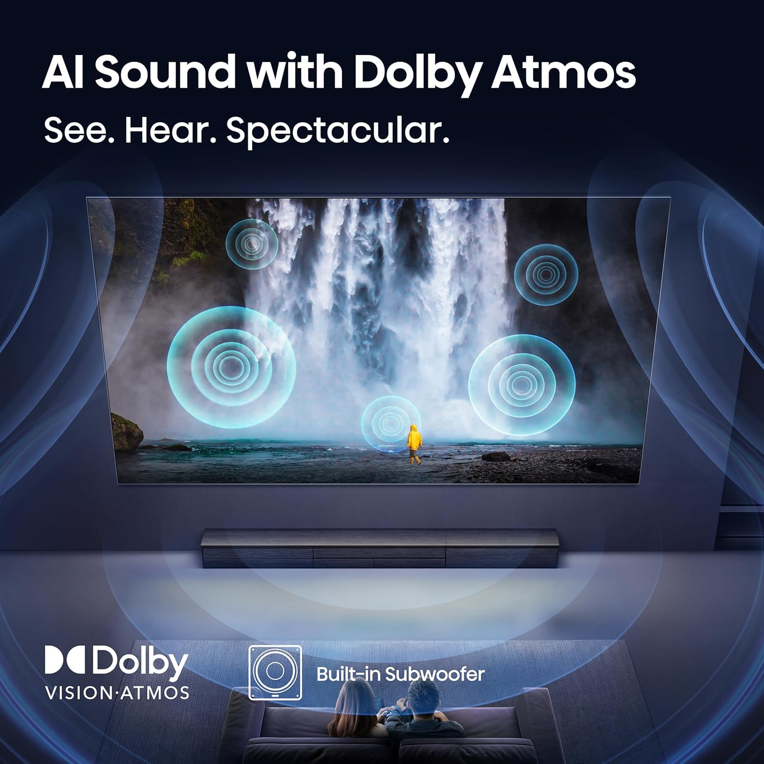 BUILT-IN SUBWOOFER: Unleash the power of deep bass from within your TV. Without the need for external units, it delivers rumbling lows that enhance every scene—from the subtle beats of a song to the roaring action of a blockbuster—elevating your audio experience to new heights
