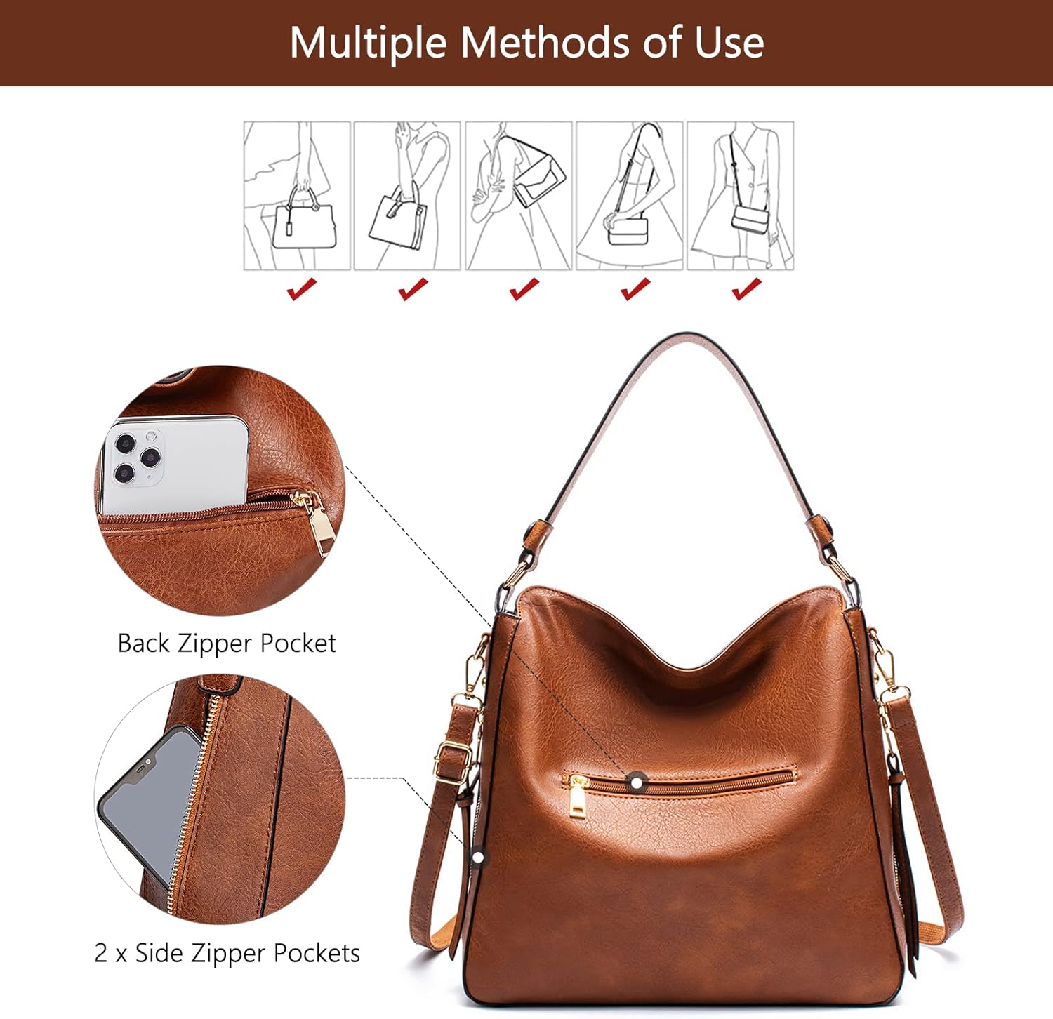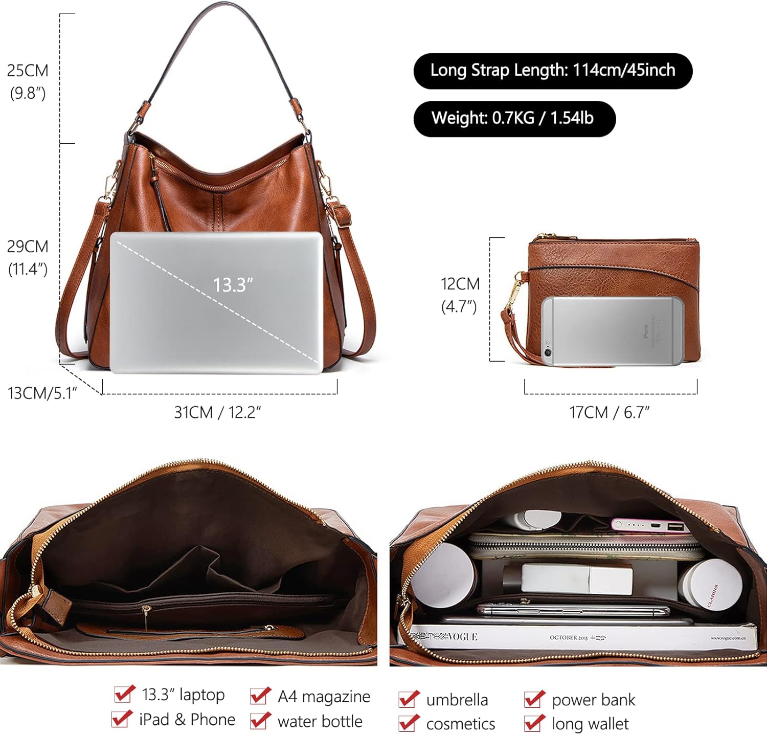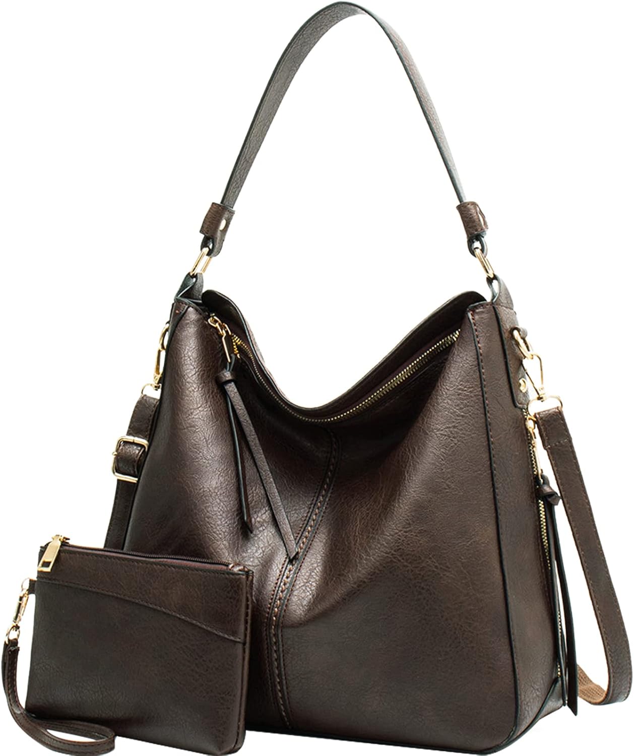 Hobo Bags for Women Handbags Purse Ladies Boho Shoulder Bag Crossbody Purses PU Leather Brown 2PCS
