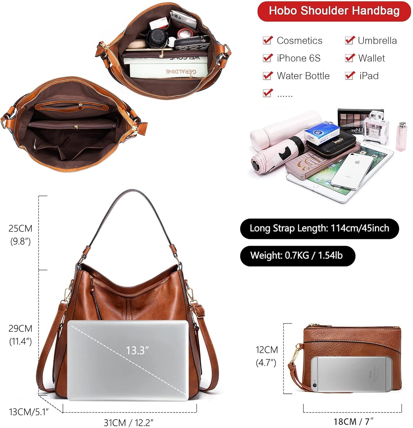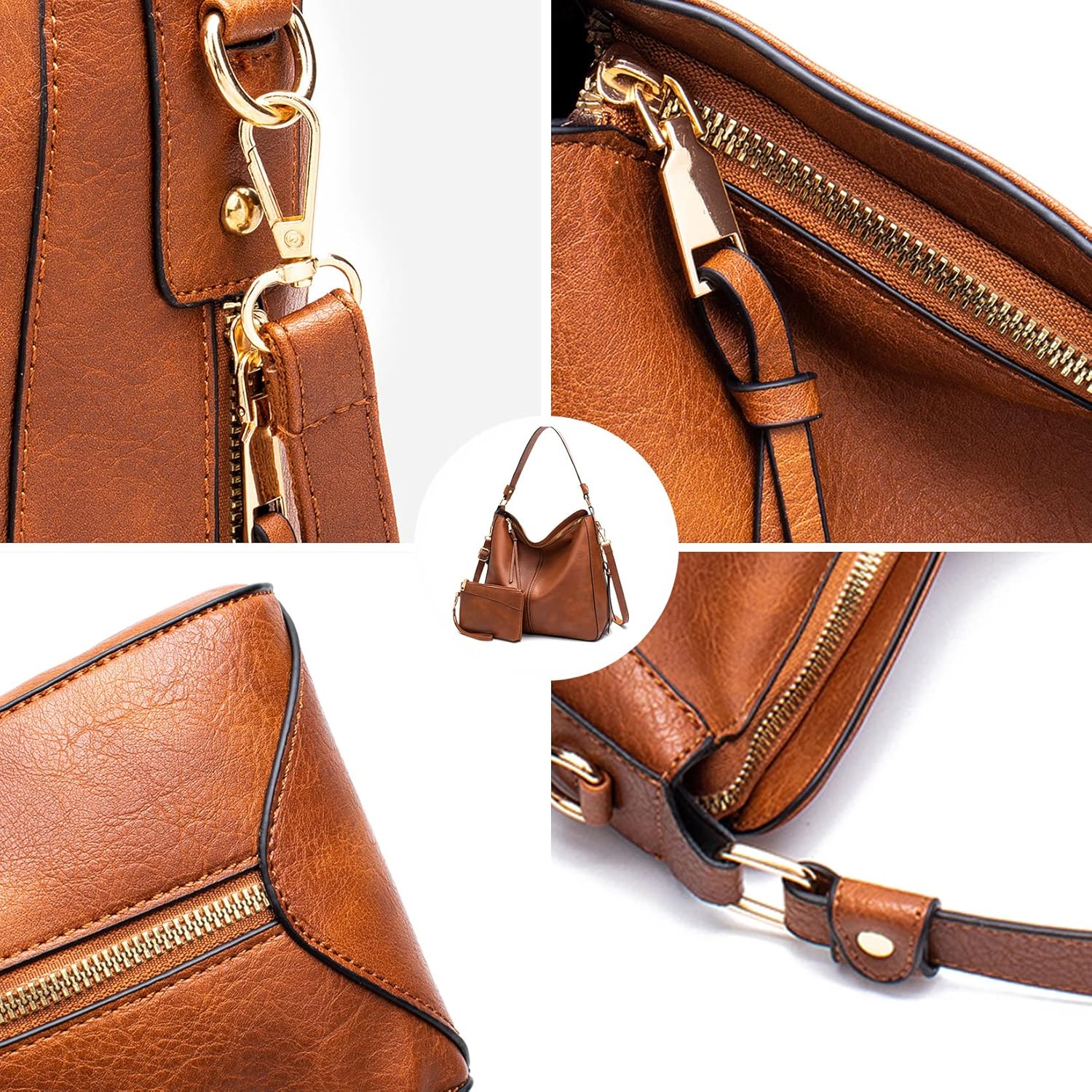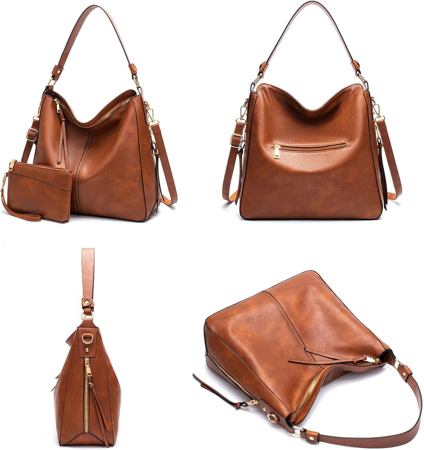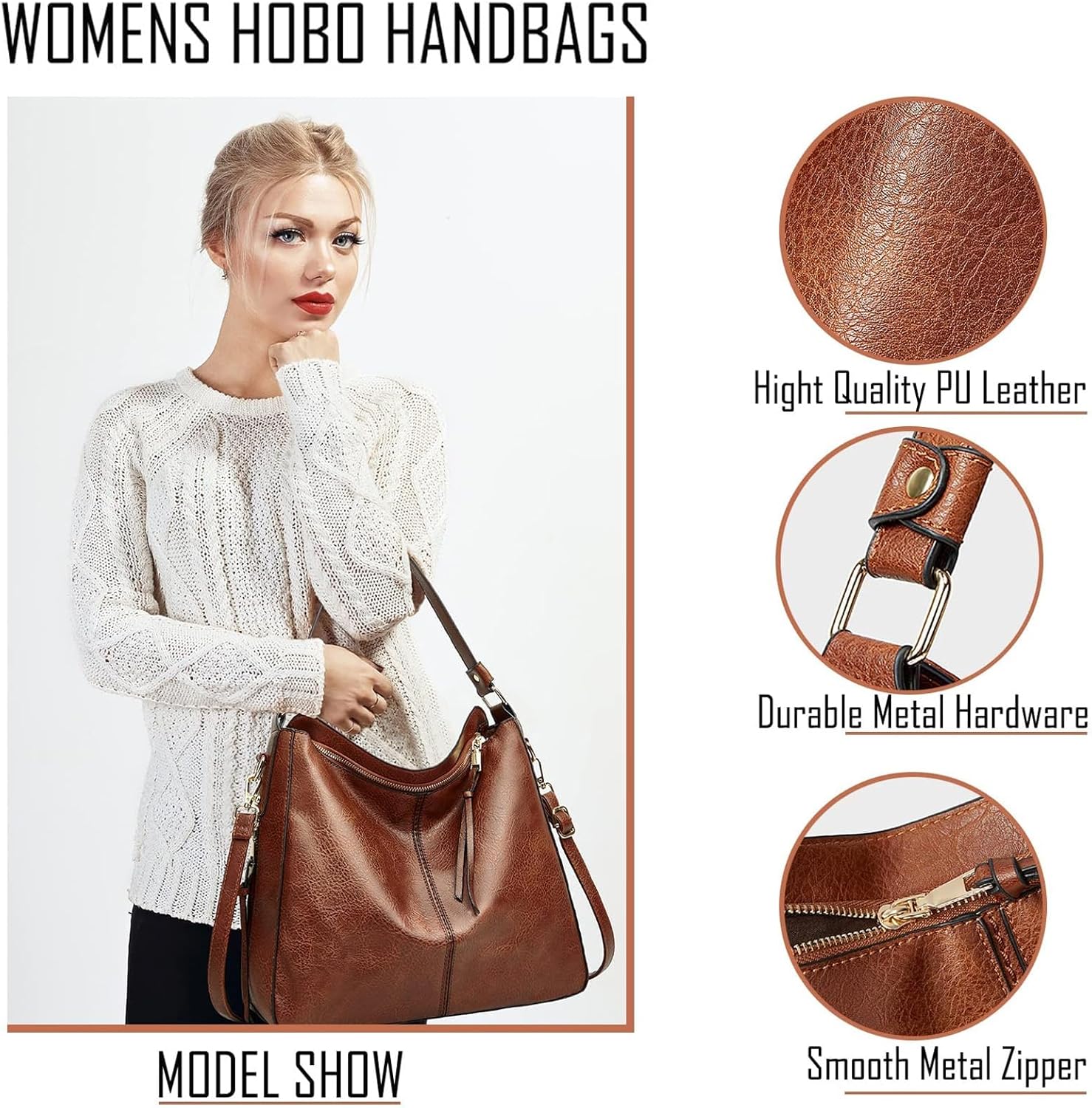 Hobo Bags for Women Handbags Purse Ladies Boho Shoulder Bag Crossbody Purses PU Leather Brown 2PCS