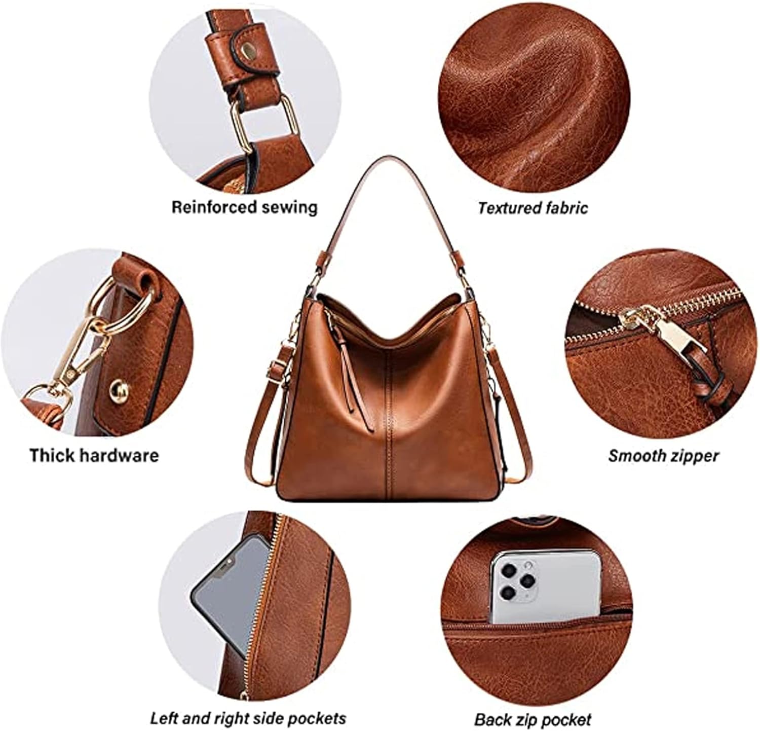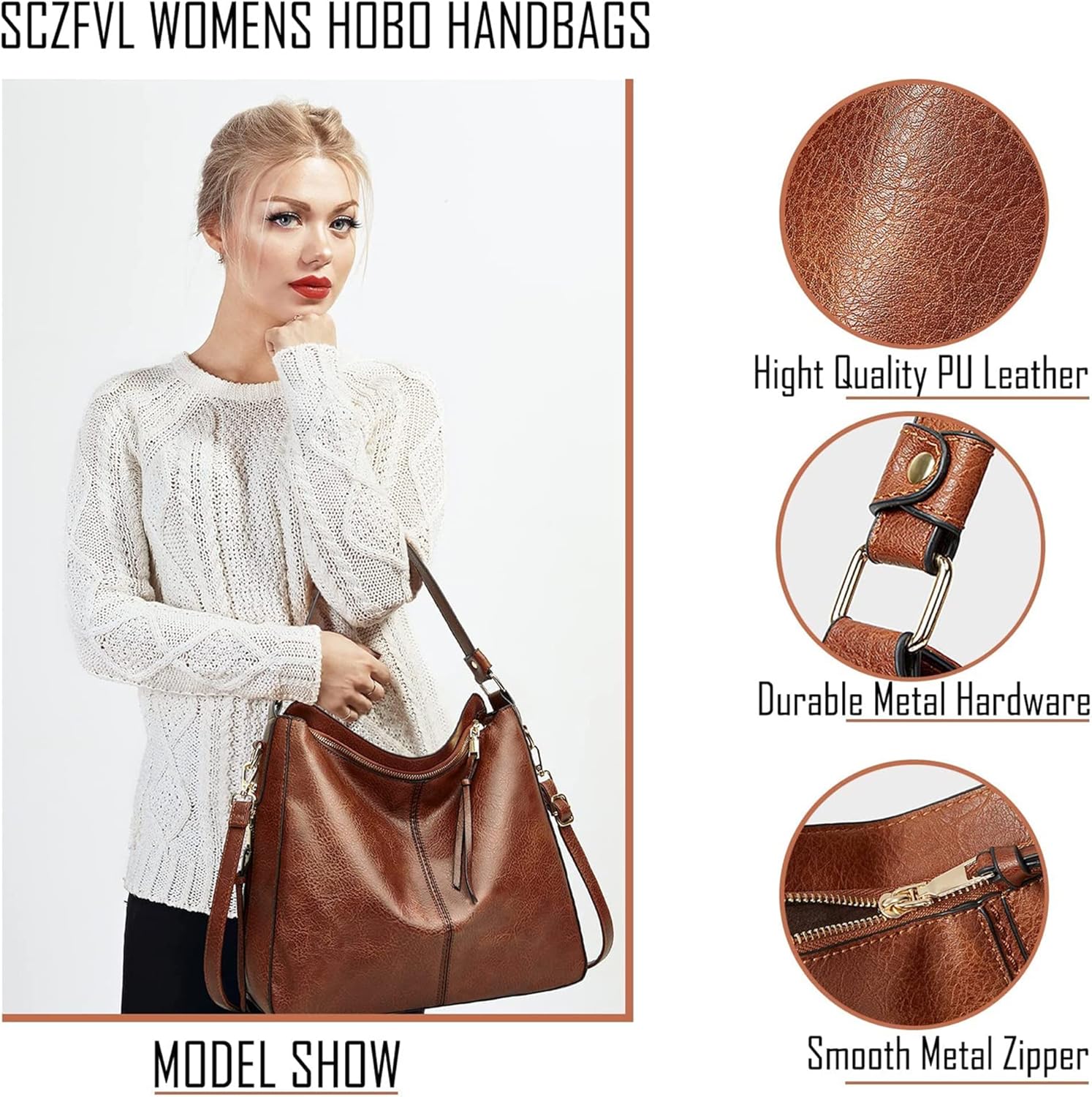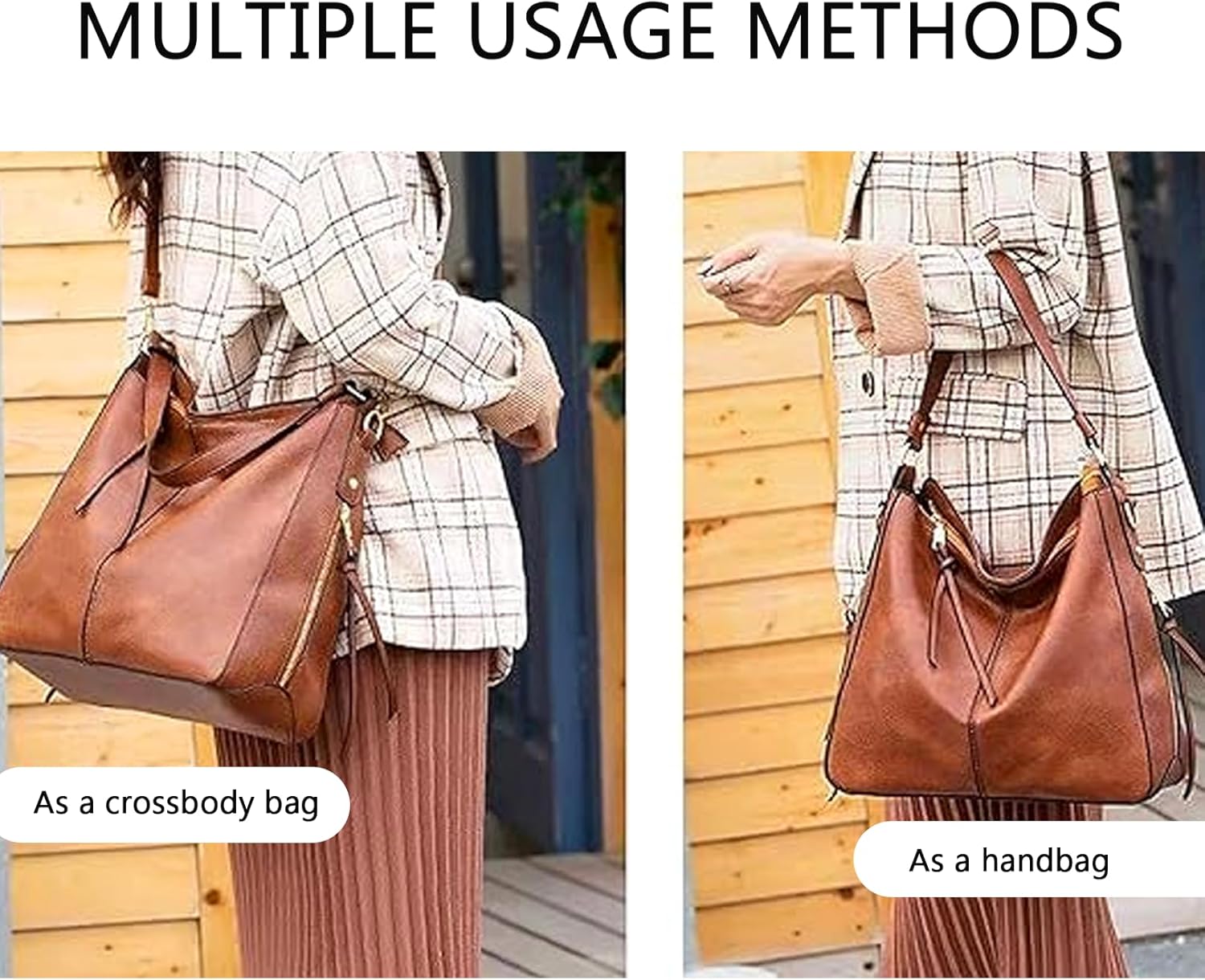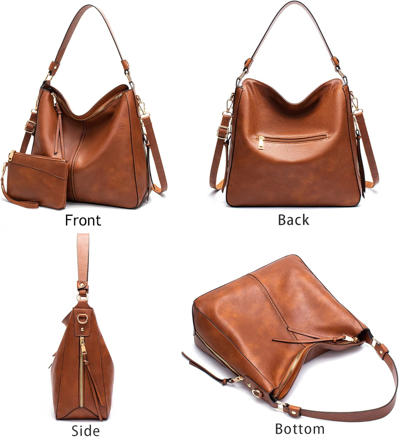 Hobo Bags for Women Handbags Purse Ladies Tote Bag Boho Shoulder Bag Large Crossbody Purses Designer Vegan Leather Brown 2PCS Set