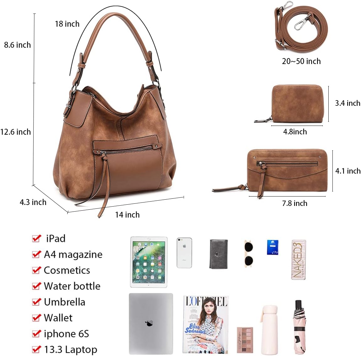 The PU leather hobo purse set can hold your iPad, A4 magazine, wallet, makeups, phone, little water bottle, perfumes, gloves and other your everyday items and keep them organized. You can use them together or individually.Perfect for dating,shopping,working,traveling, vocation, party and other occasions