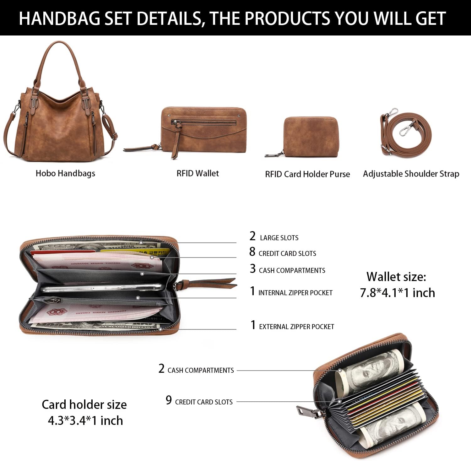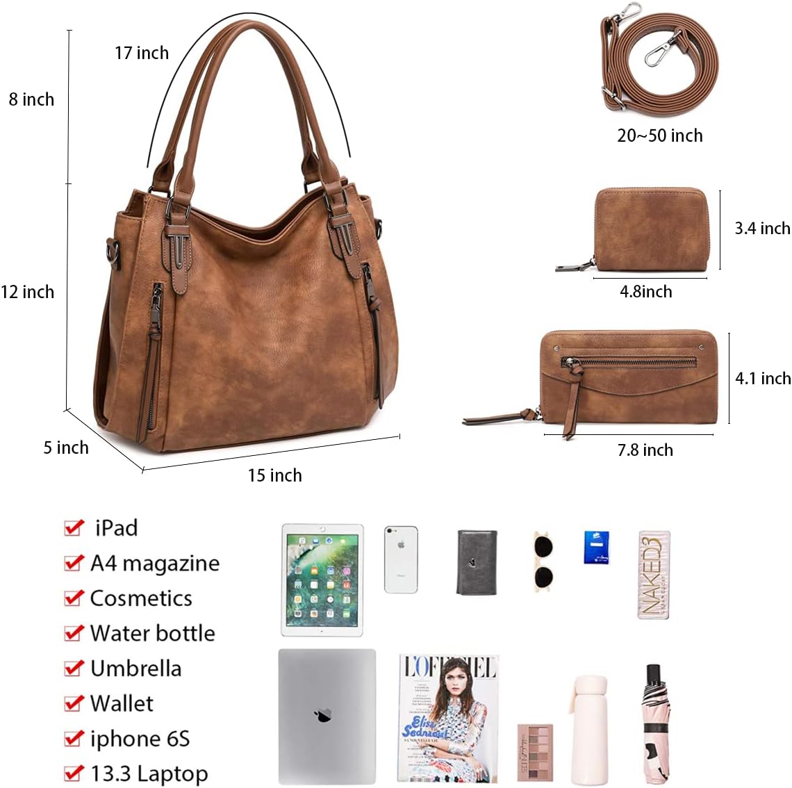 The PU leather hobo purse set can hold your iPad, A4 magazine, wallet, makeups, phone, little water bottle, perfumes, gloves and other your everyday items and keep them organized. You can use them together or individually.Perfect for dating,shopping,working,traveling, vocation, party and other occasions