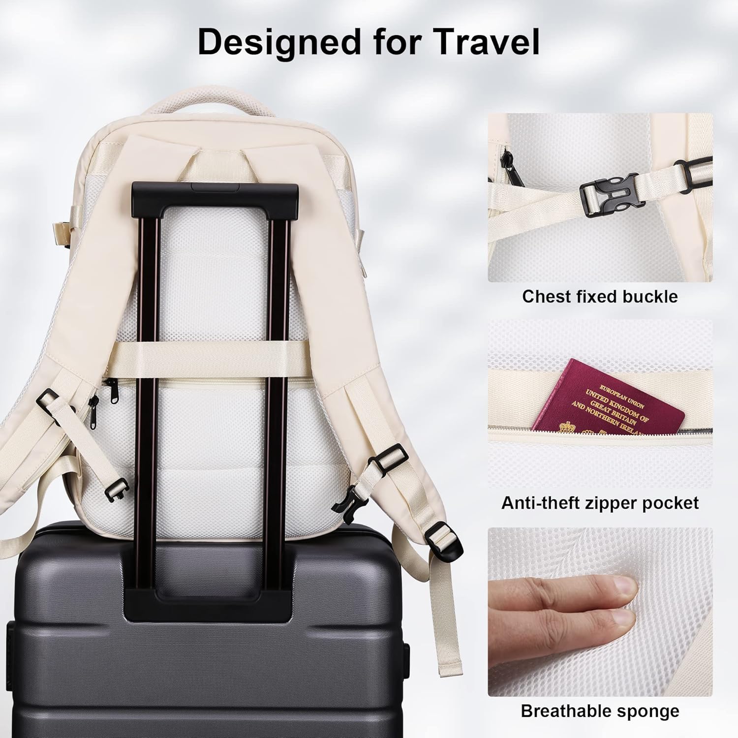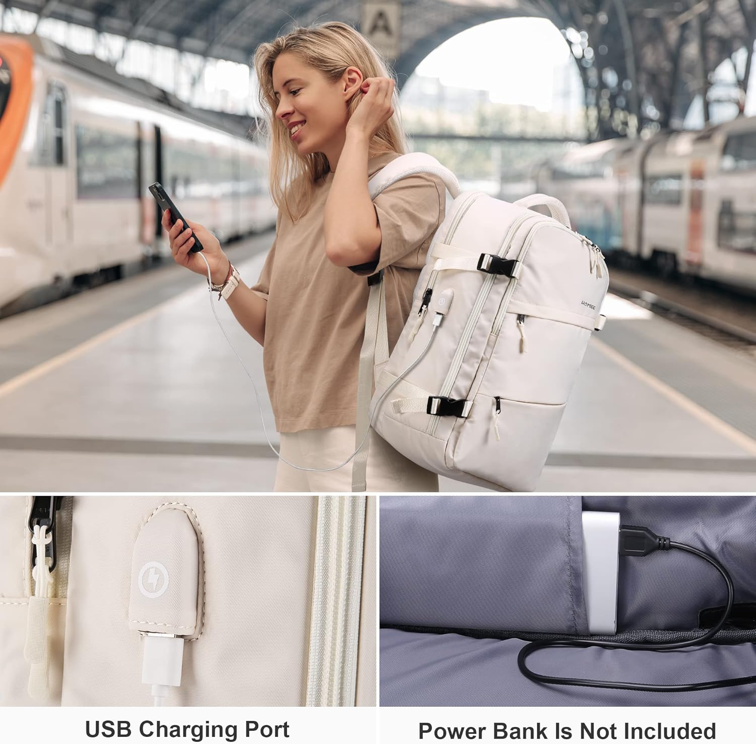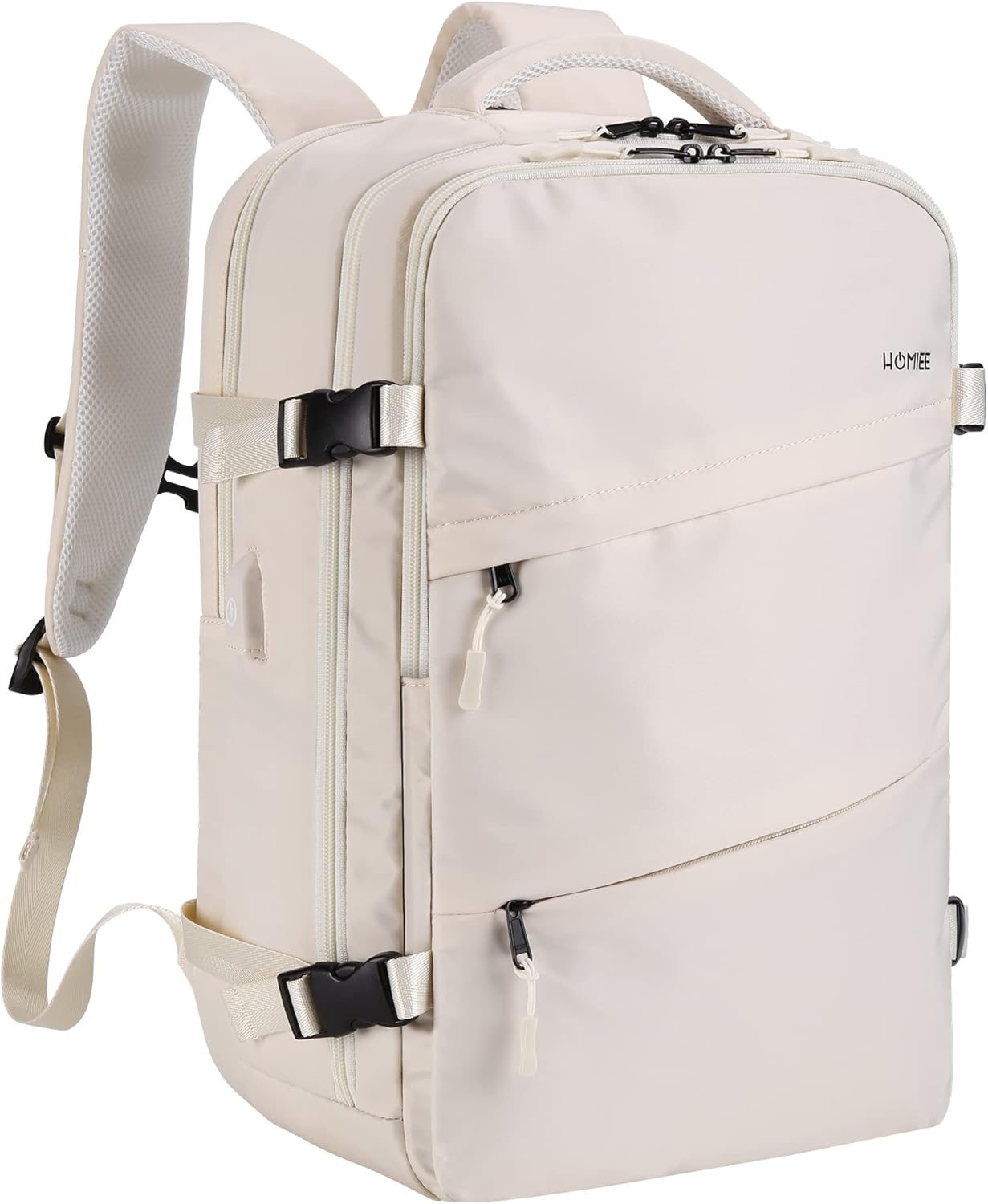 HOMIEE Travel Laptop Backpack, Flight Approved Carry-On Backpack 15,6″ Laptop Backpack, Anti-theft Travel Backpack with USB Charging Port, Unisex Luggage Backpack, White