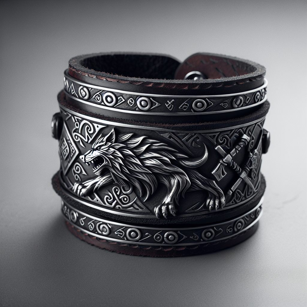 HZMAN Norse Wolf Fenrir Wide Leather Bracelets for Men Women Punk Rock Biker Cuff Wrap Gothic Wristband