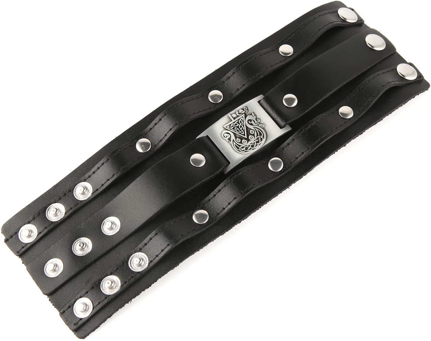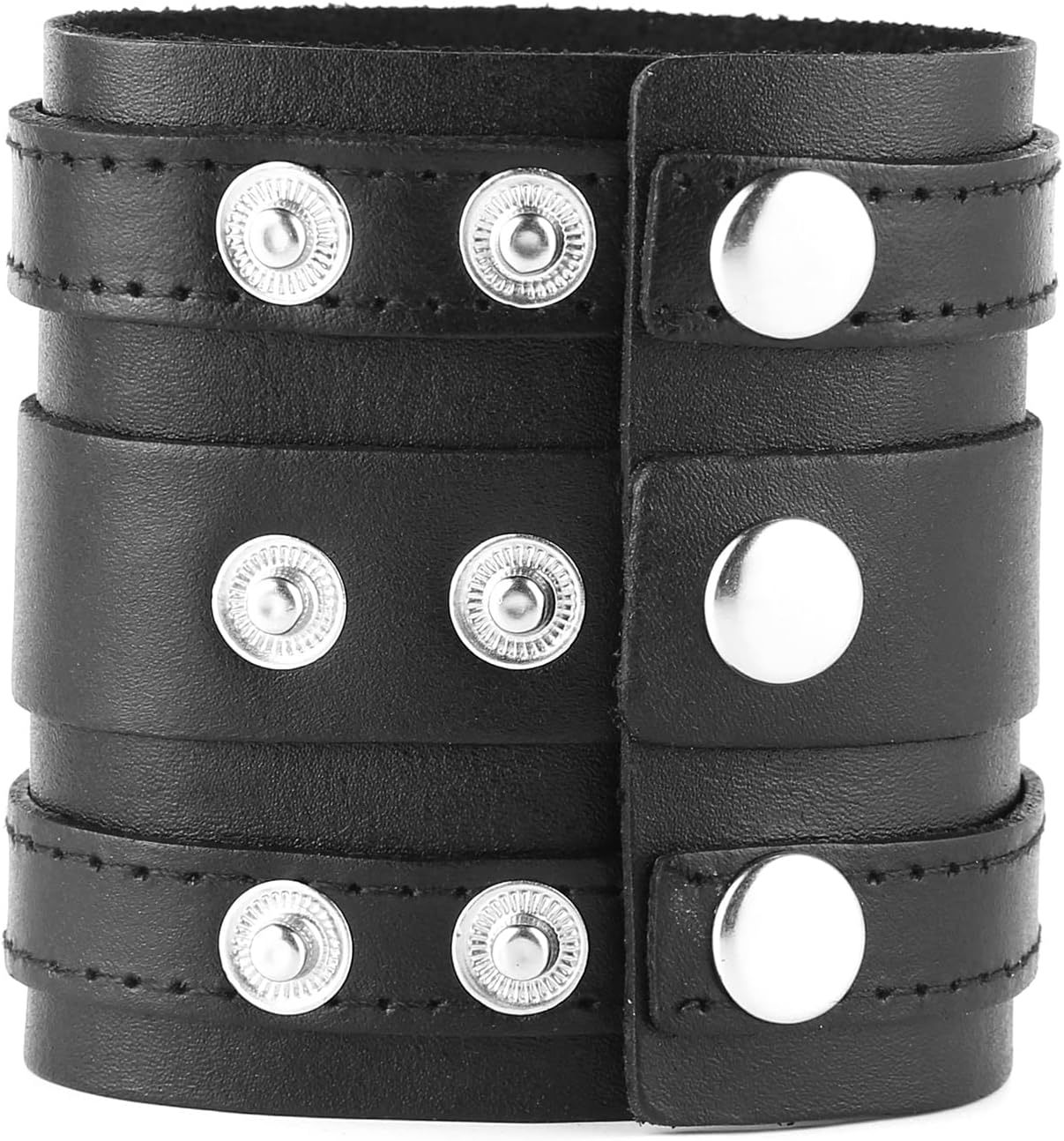 Material: Faux Leather & Alloy Fashionable black leather cuff bracelet is a cool accent for your wardrobe.