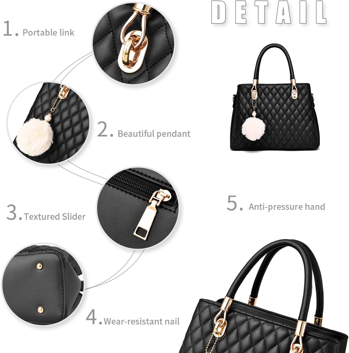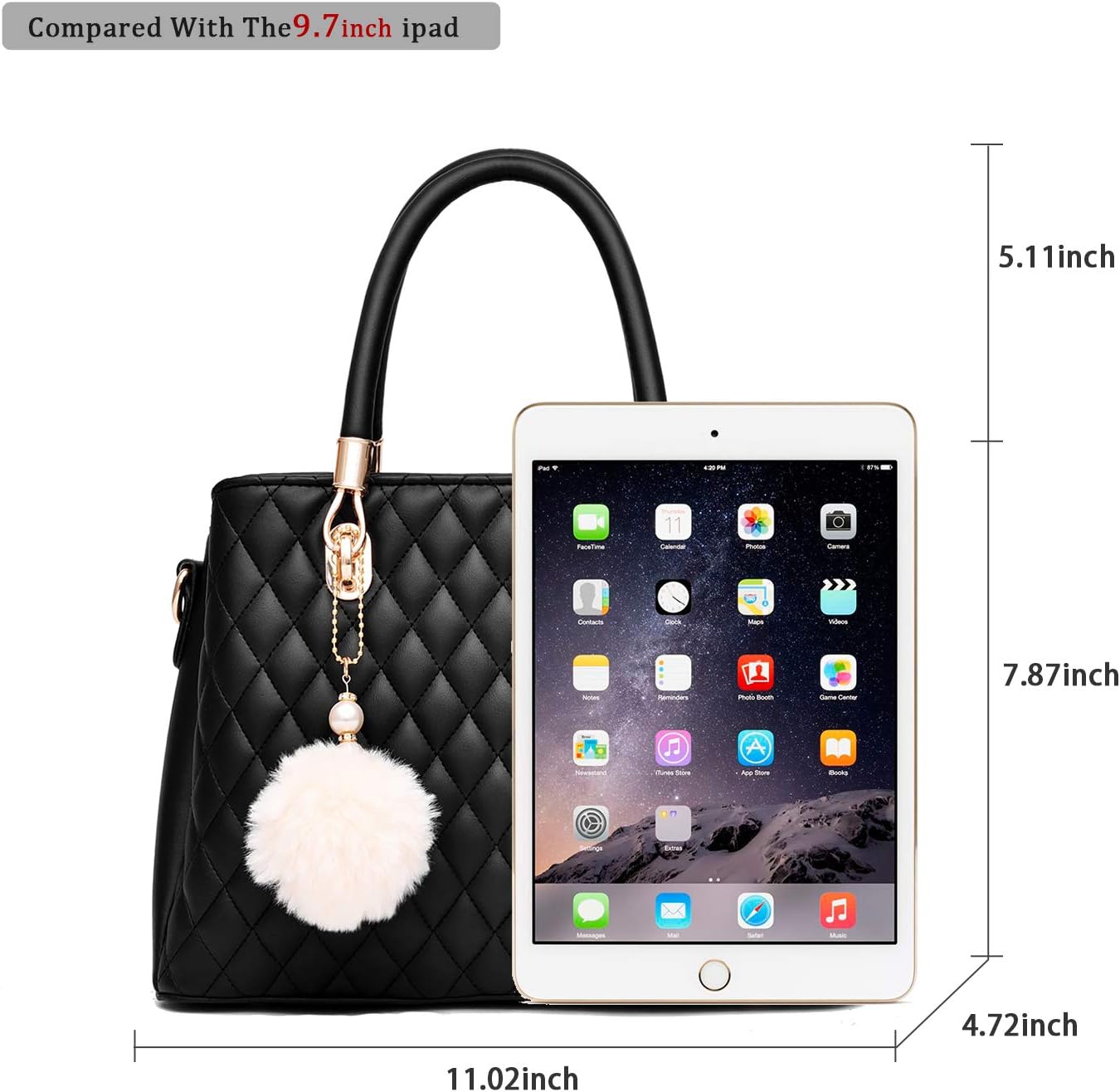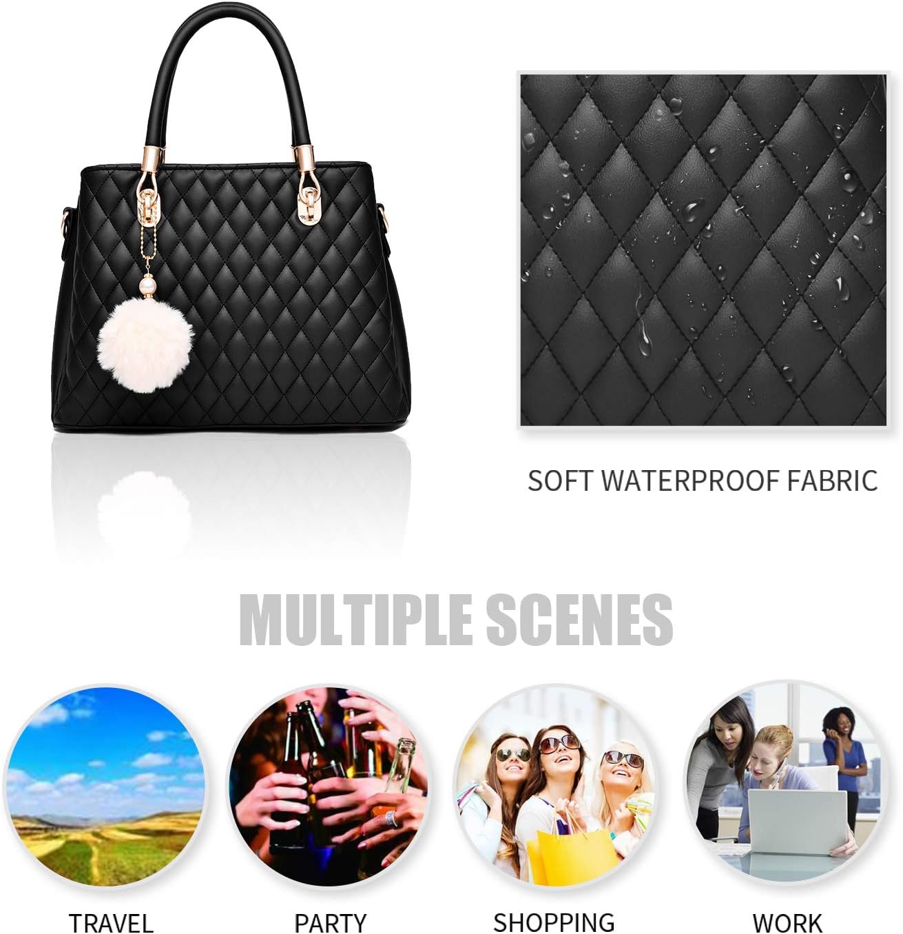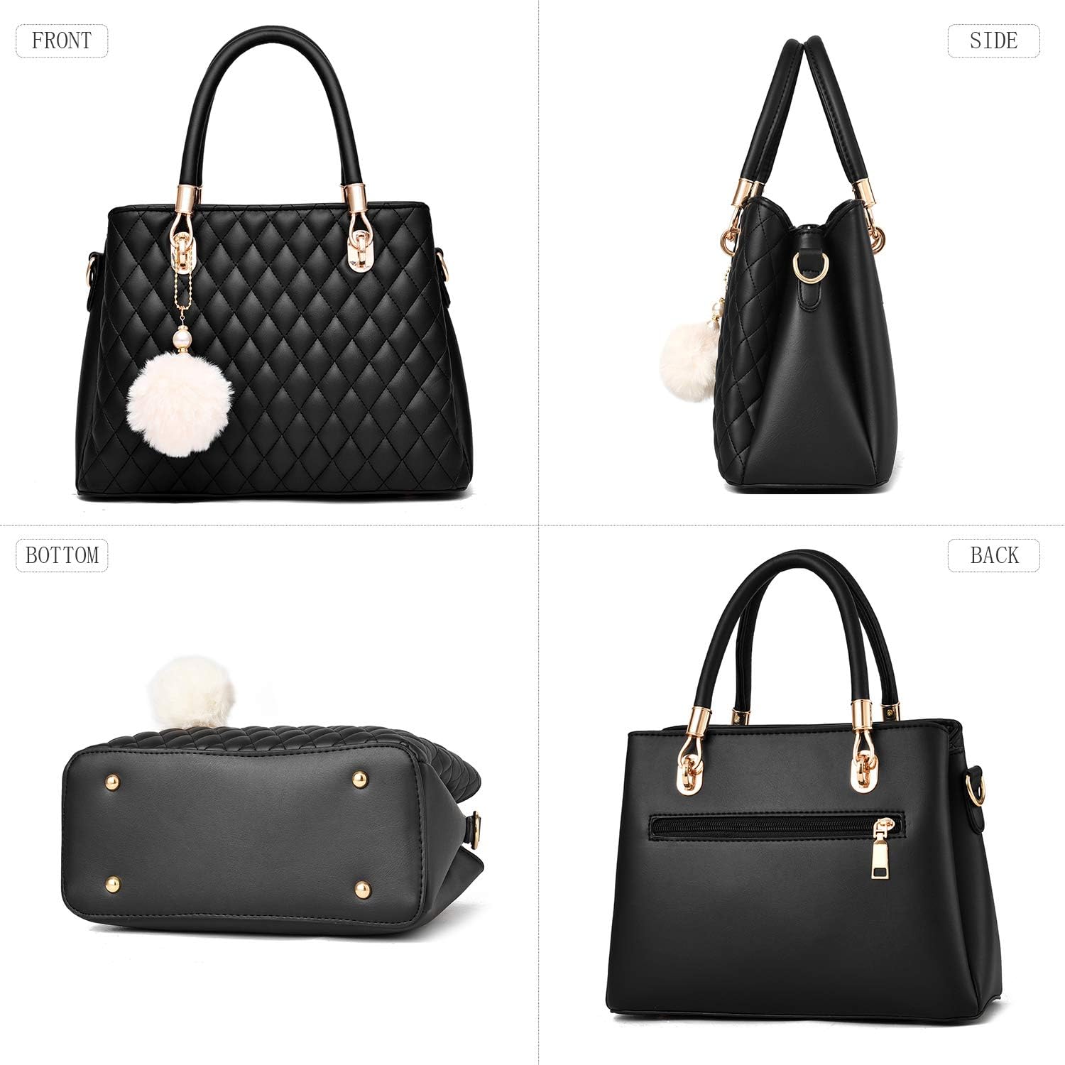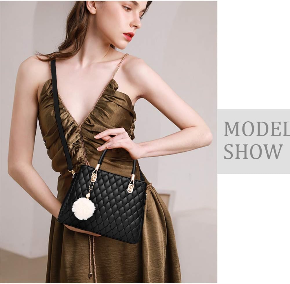 I IHAYNER Womens Leather Handbags Purses Top-handle Totes Satchel Shoulder Bag for Ladies with Pompon