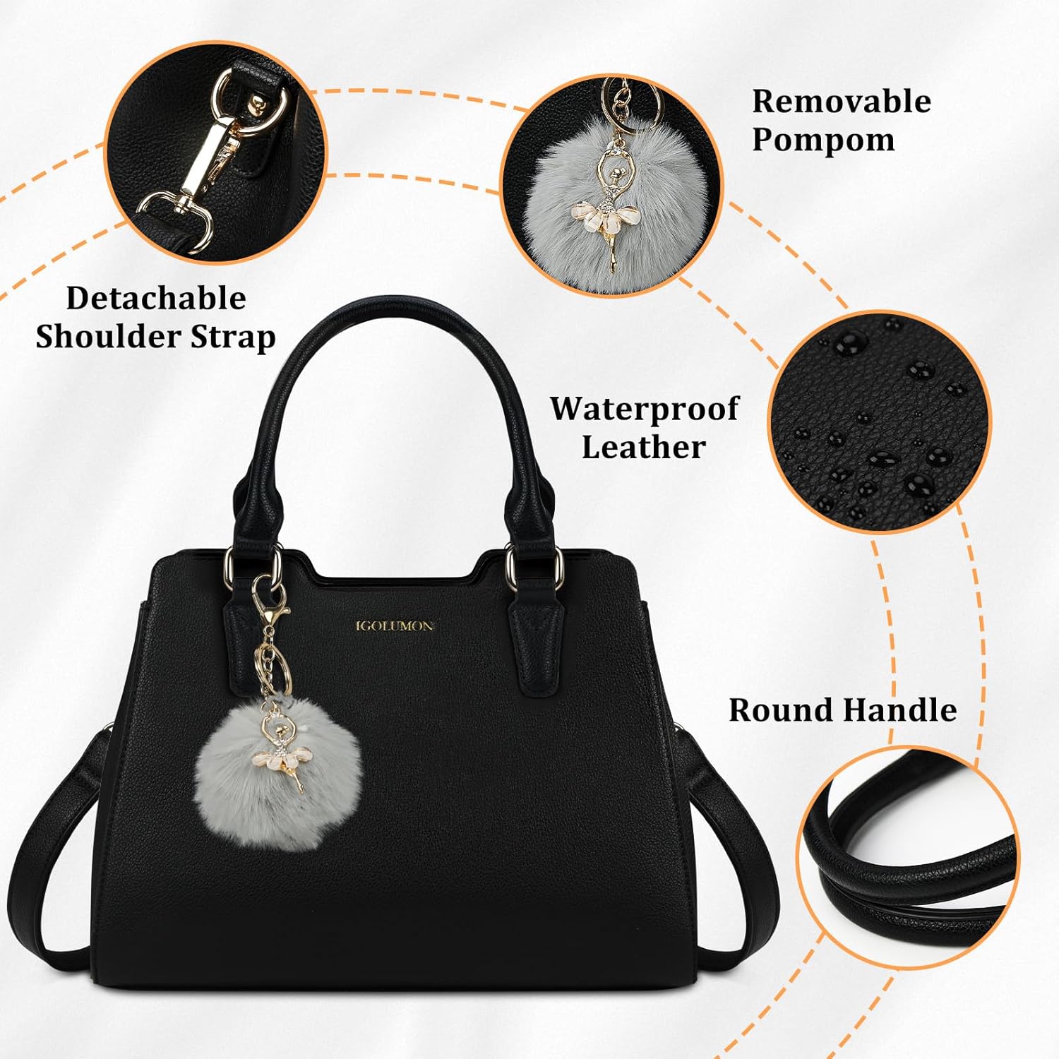IGOLUMON Top-Handle Handbag Leather Purses for Women Waterproof Crossbody Womens Handbags Anti Theft Tote Purse Ladies
