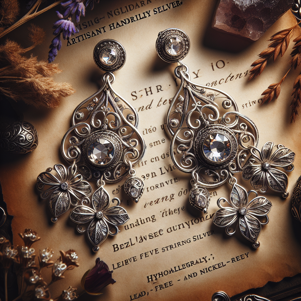 JEAN RACHEL JEWELRY 925 Sterling Silver Dangle Earrings for Women – Wire Wrap with Bezel Set Cubic Zirconia Vintage Design – Hypoallergenic, Lead & Nickel Free – Artisan Handcrafted Statement Earrings
