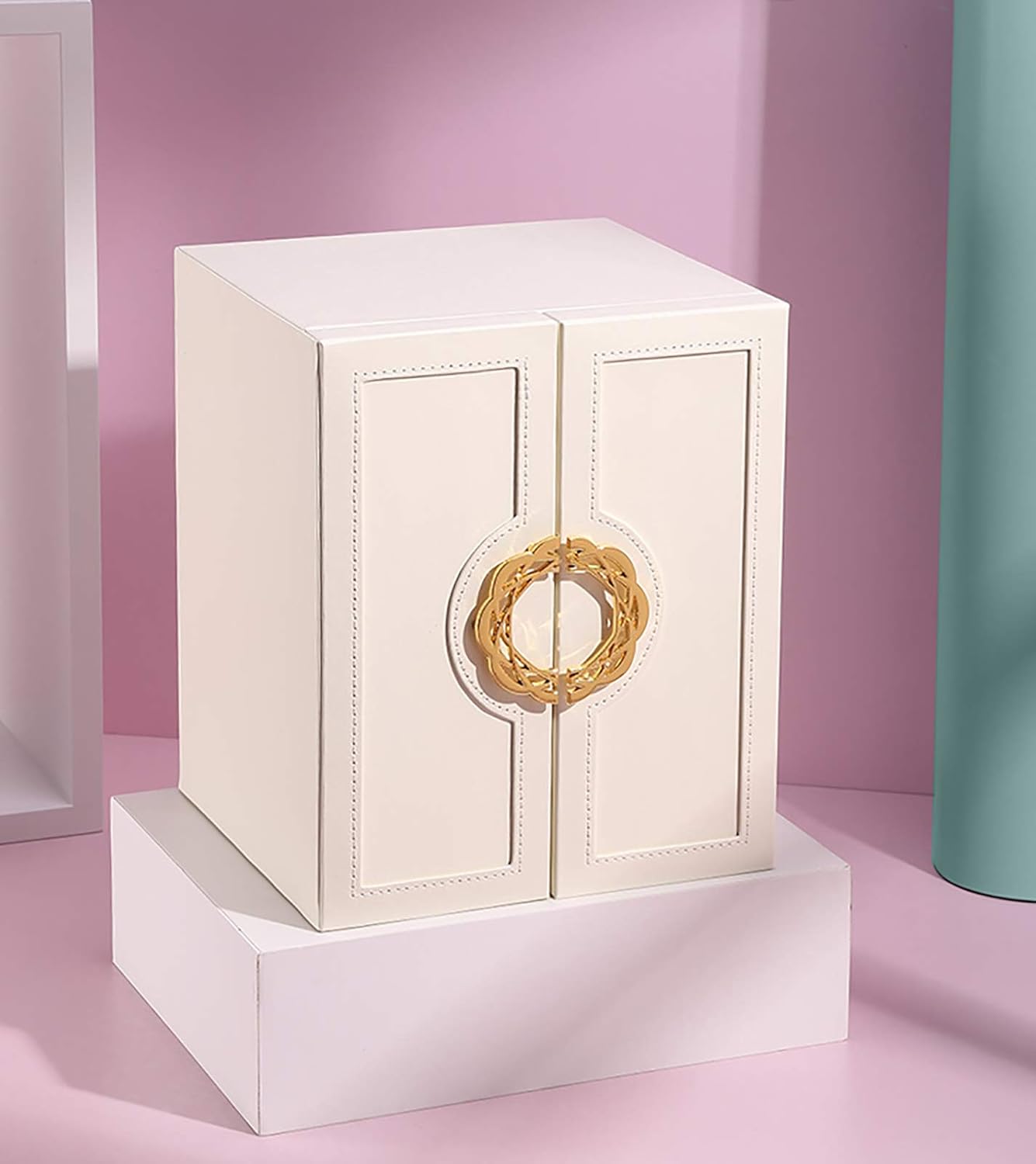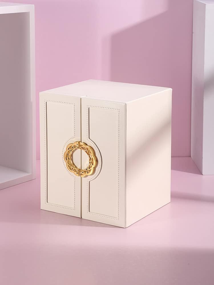 The jewelry box is made from faux leather on the outside and soft white velvet on the inside, making it waterproof and wear-resistant.