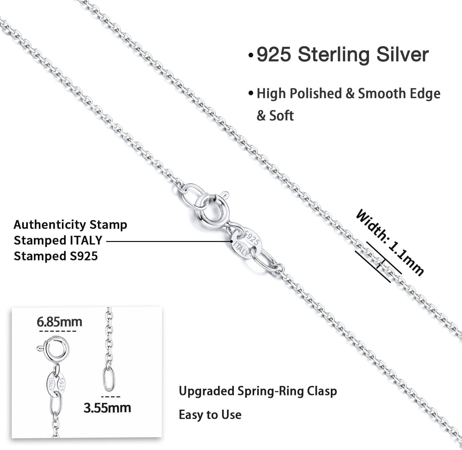 Jewlpire 925 Sterling Silver Chain Necklace Chain for Women Girls 1.1mm Cable Chain Necklace Upgraded Spring-Ring Clasp – Thin & Sturdy – Italian Quality 16/18/20/22/24 Inch