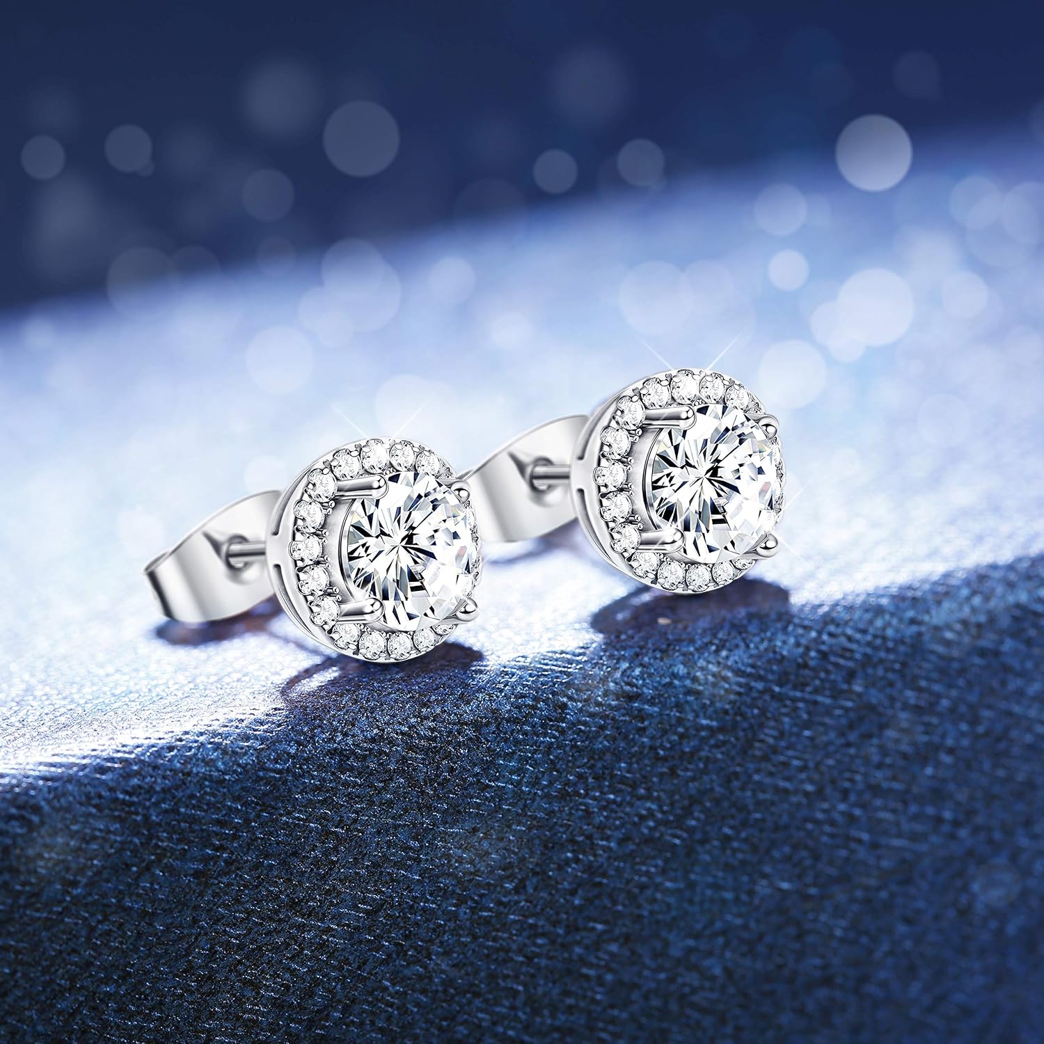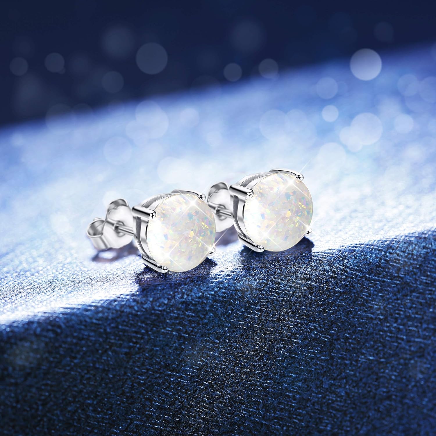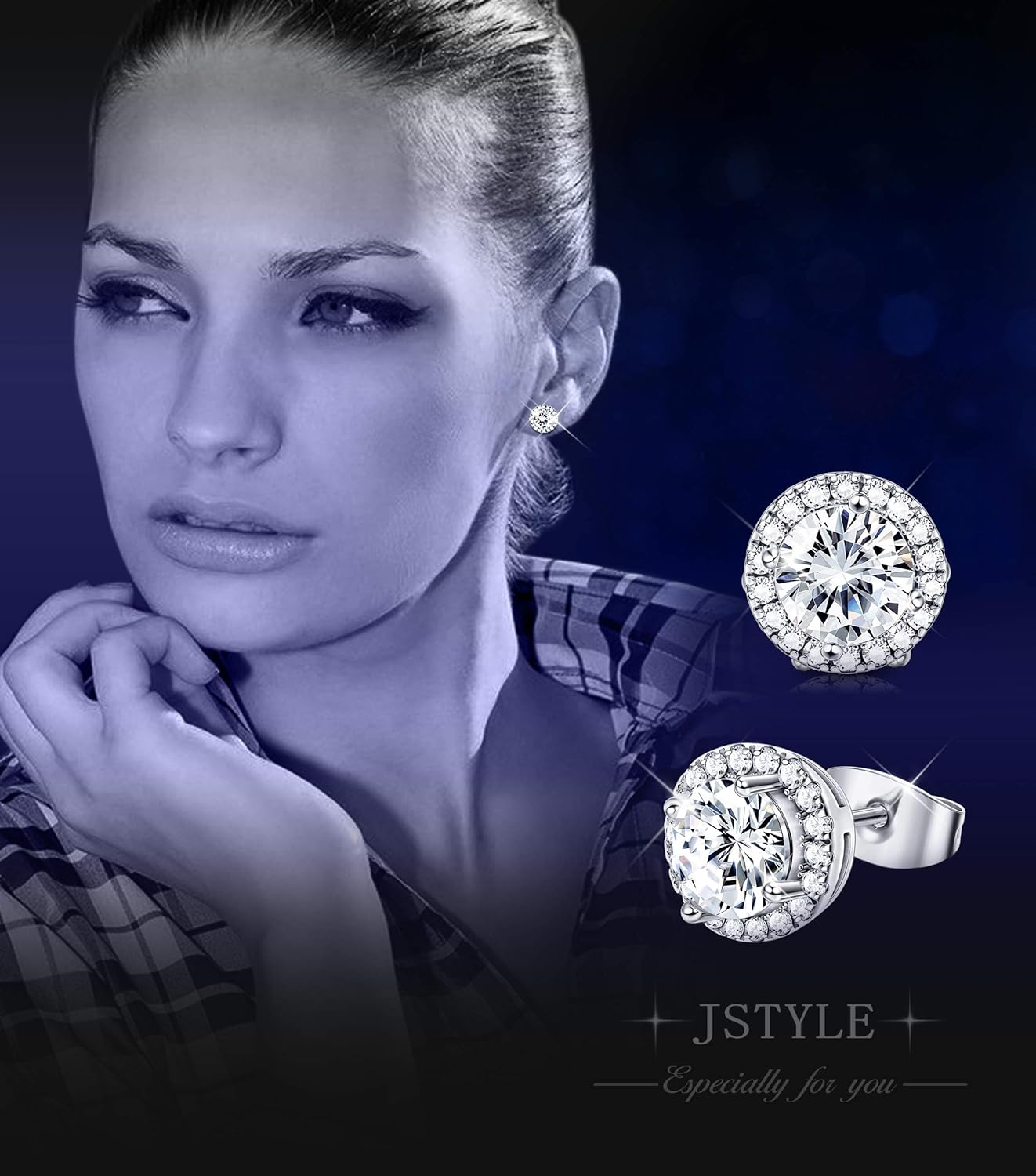 Jstyle Stud Earrings for Women 18K White Gold Rose Plated CZ Halo Earrings Created Opal Earrings Set for Sensitive Ears with Gift Box