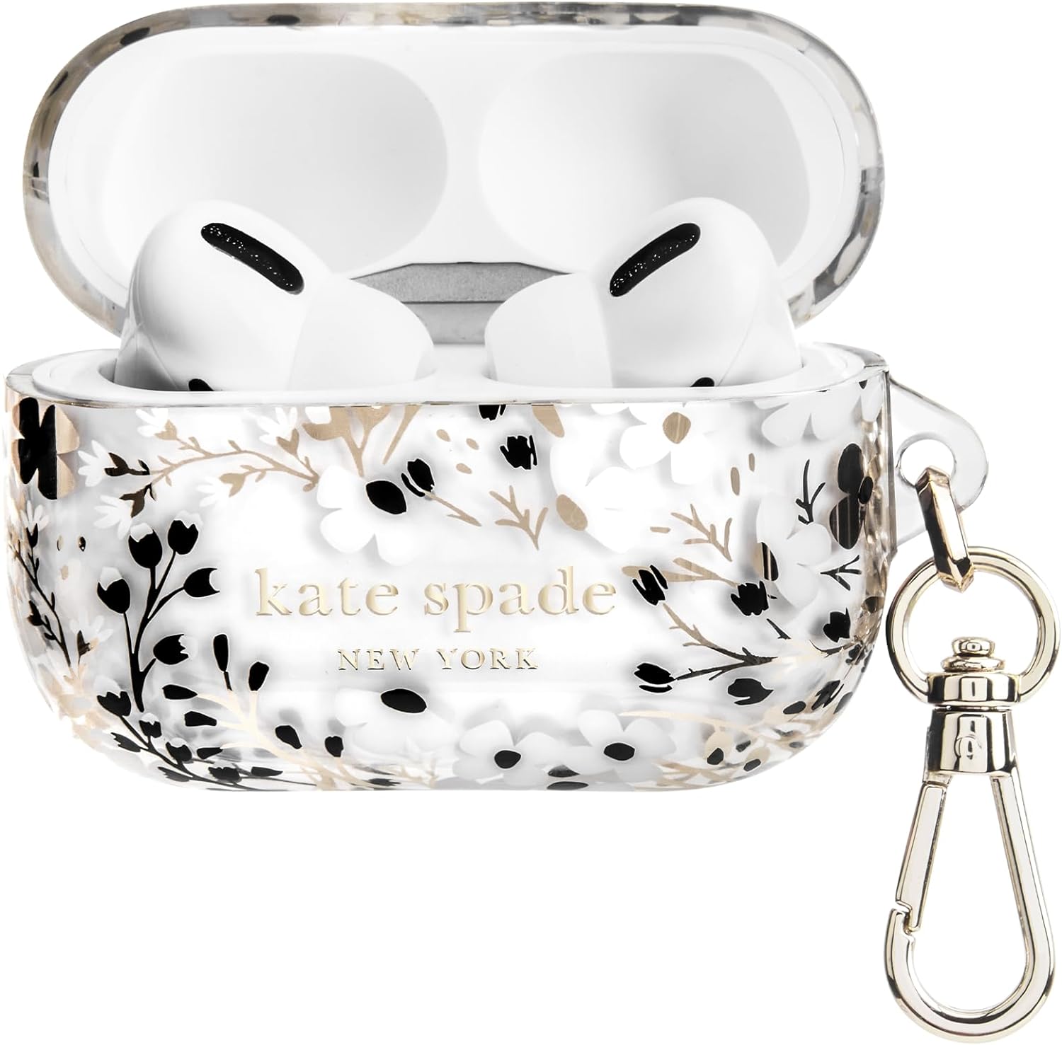 Kate Spade New York AirPods Pro Protective Case with Keychain Ring – Multi Floral Black and White, Compatible with AirPods Pro 2nd / 1st Generation