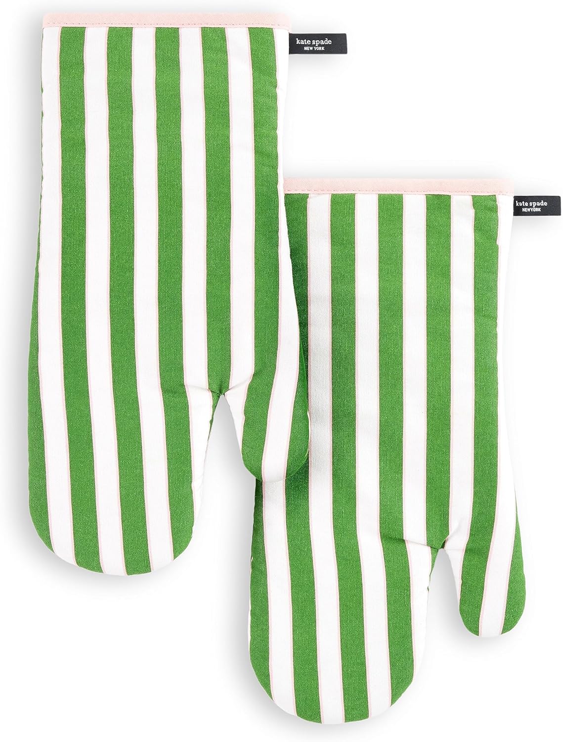 Kate Spade New York Botanical Stripe Oven Mitt 2-Pack Set, 7″ x 13″, Green/Pink