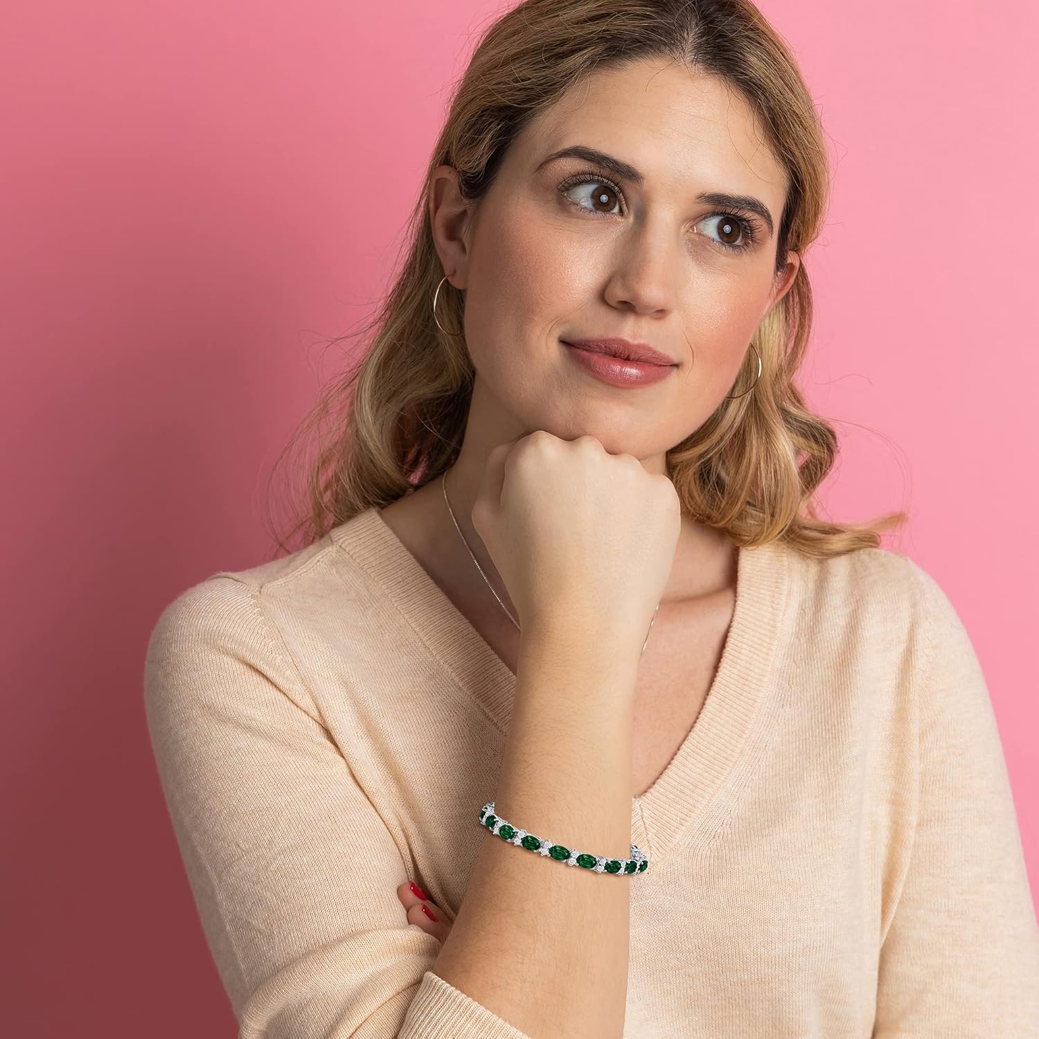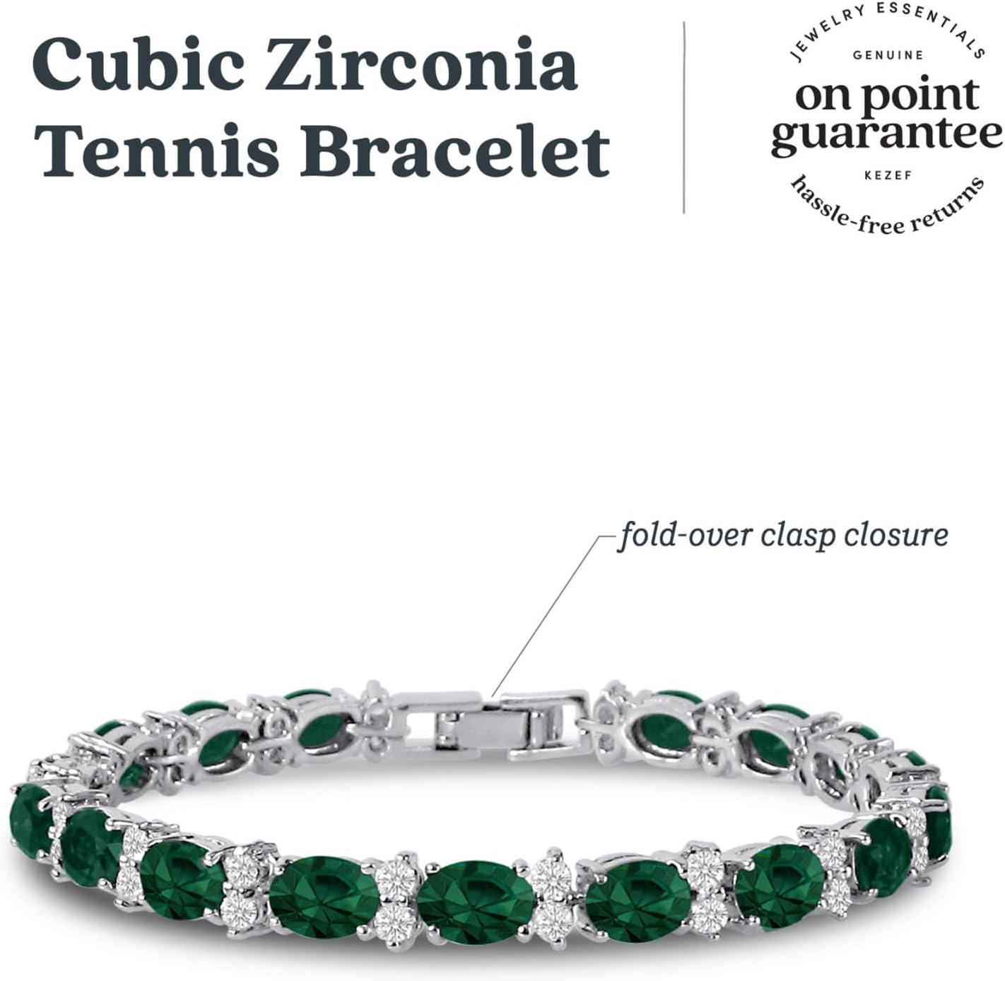 KEZEF Oval & Round CZ Tennis Bracelet – 6.5 Inch, 7 Inch, 8 Inch” Silver Plated – Hypoallergenic – 8 Gemstone Colors – Gift Jewelry for Women