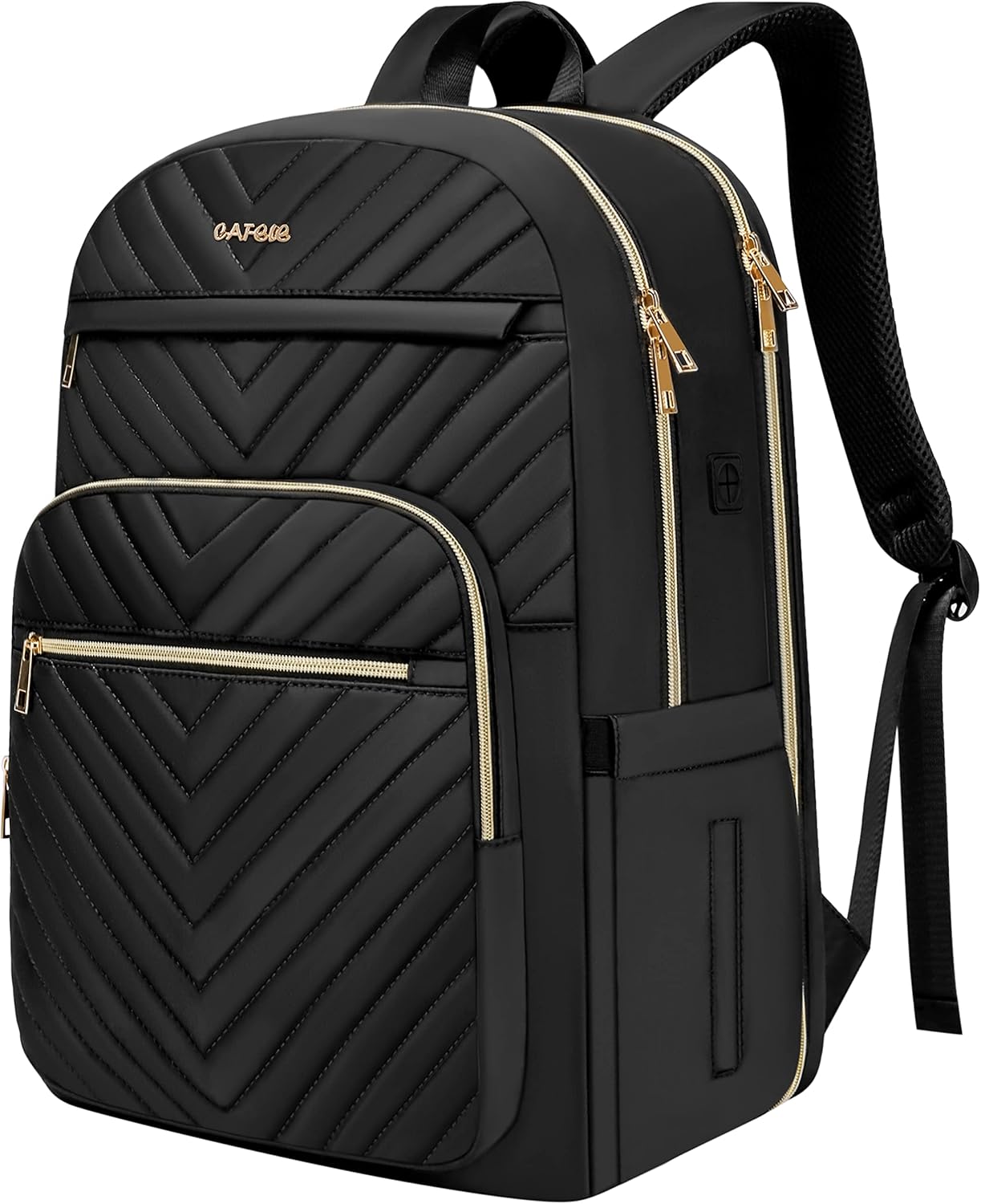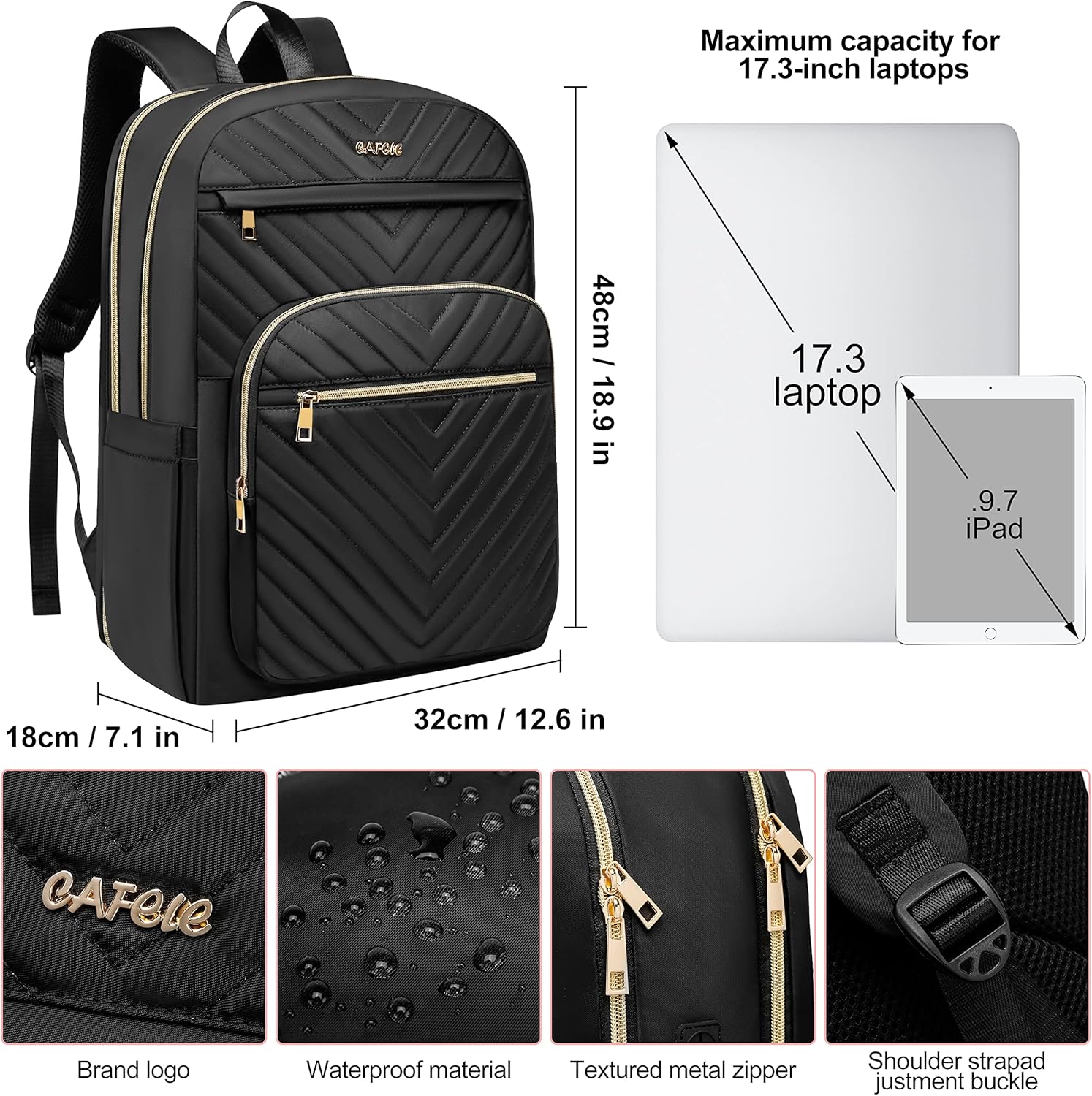 Laptop Backpack 17.3 Inch Stylish Daypack with USB Port, Water-repellent College Bookbag,Large Bagpack for Travel/Business/Women/Quilted Black