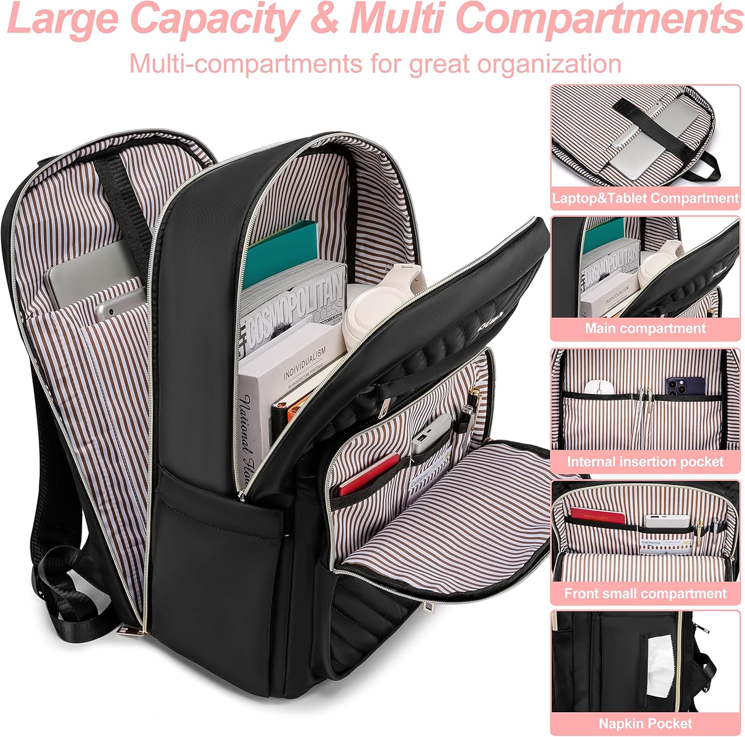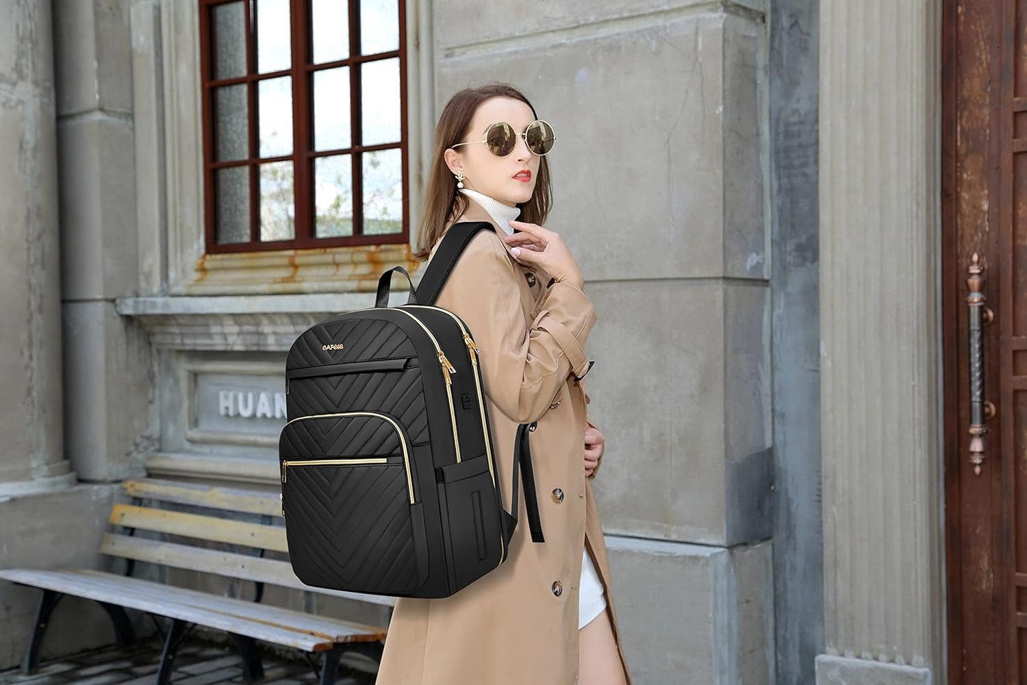 This laptop backpack is made of water-resistant, sturdy, and tear-resistant Oxford material.Stylish and fashion design, roomy for everything you need, a good choice for daily commute, business travel, college rucksack bookbag, backpack purse for women, work backpack, carry-on bag etc.