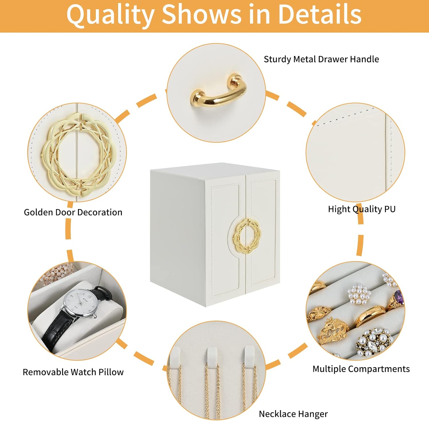 5-layer jewelry box: The jewelry storage organizer case has a 5 drawers structure, which can neatly store all kinds of your accessories such as necklaces, earrings, rings, bracelets and watches
