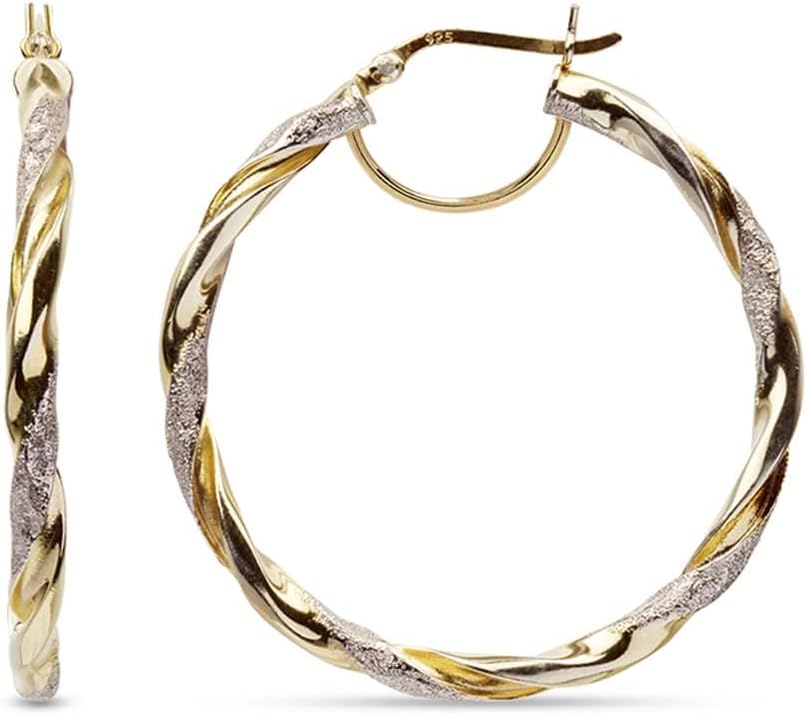 LeCalla 925 Sterling Silver Textured Two-Tone 14K Gold Plated Light-Weight Italian Design Hoop Earrings for Women Diameter 25,30,40,45,50mm