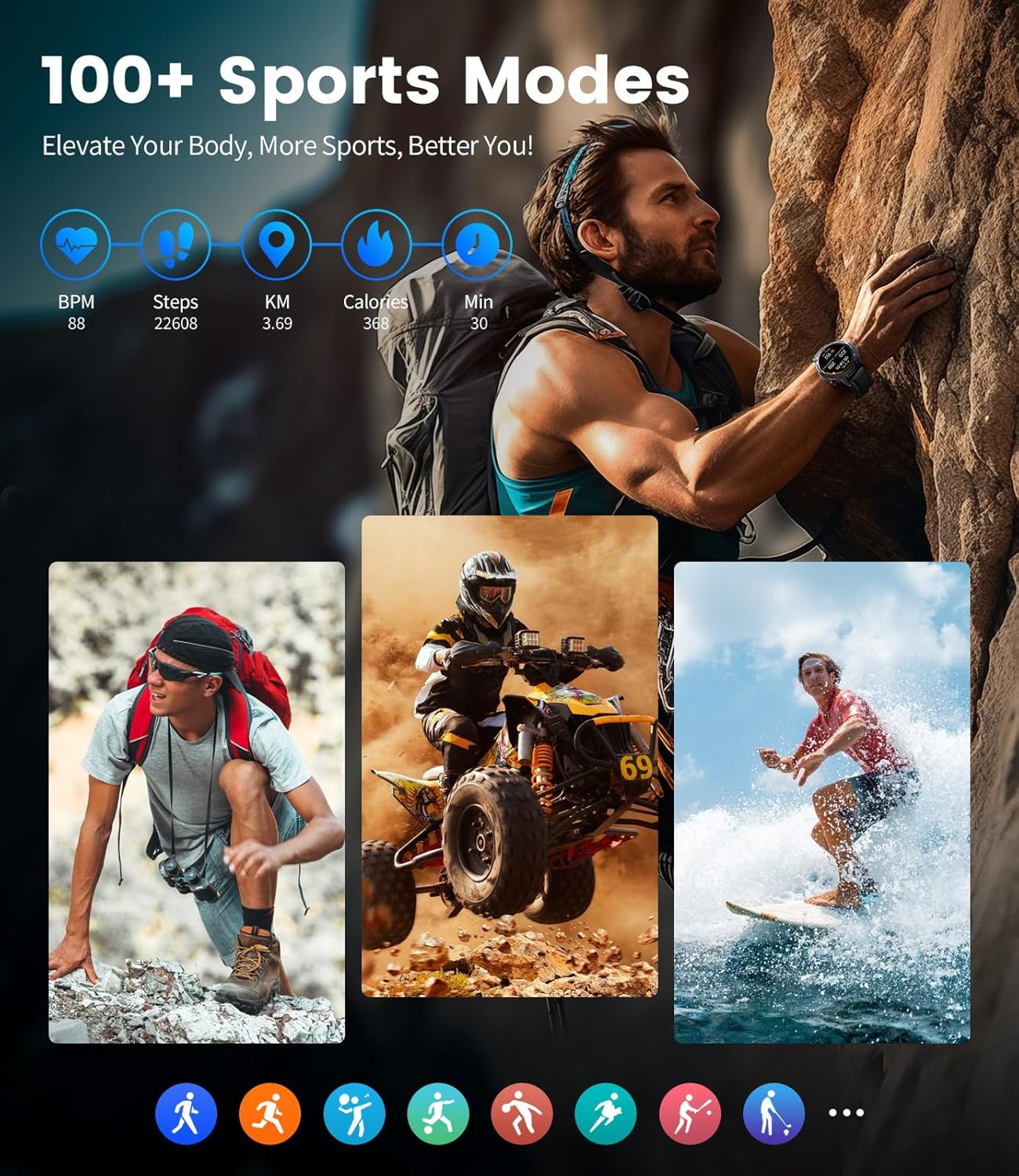 【Military-Grade Durability Meets Premium Design】: The upgraded smart watch for men is built for those who demand unmatched reliability and toughness—whether in extreme conditions or during intense activities. Rigorously tested to meet military standards, it offers outstanding shock resistance and waterproof performance. The surface of the step counter features a brushed finish that enhances its metallic texture and masculine style while resisting fingerprints and scratches. It combines excellent durability with refined elegance, making it a stylish and rugged accessory you’ll be proud to wear.(Tip: The product link includes helpful tutorial videos for easy setup and use.)