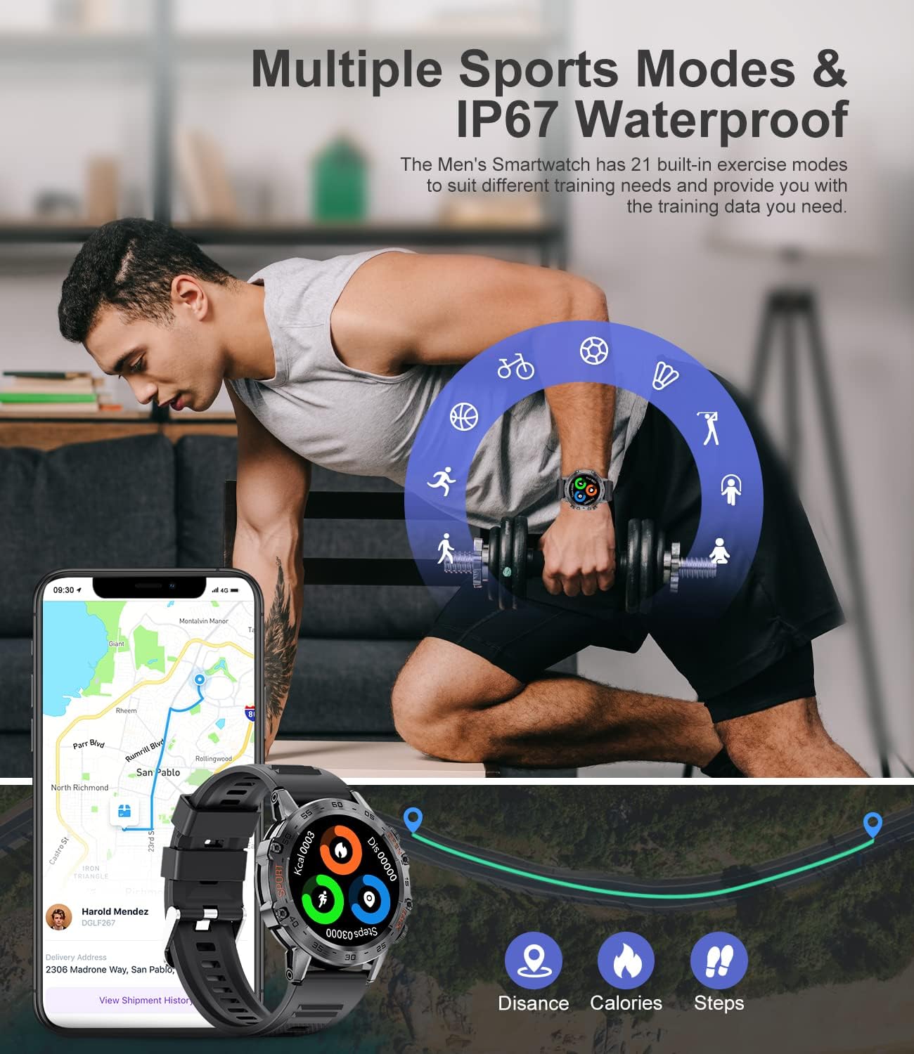 【Daily Date Function】This Military smart watches for men supports daily date to help you better analyze your health status and reasonably adjust your lifestyle. More practical functions such as weather forecast, alarm clock, camera control, music control, timer, sedentary reminder, etc., make your life more convenient.