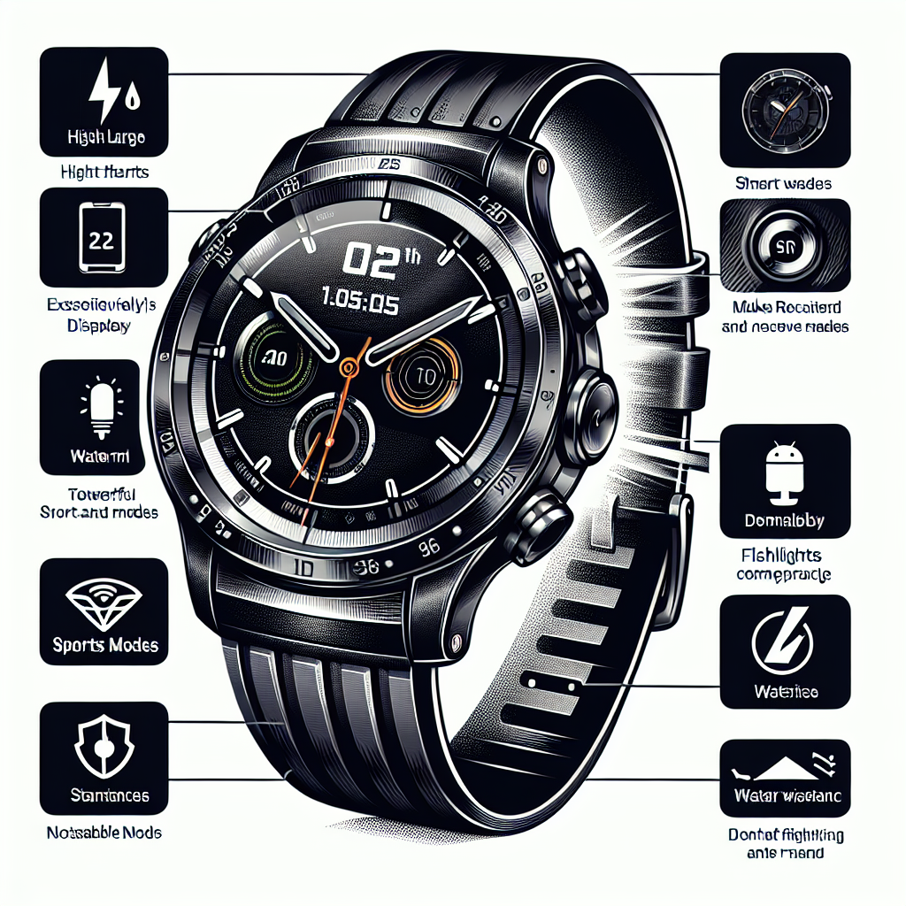 ✅【Multi-functional and Powerful Compatibility】The smart watch for men android features alarm clock, stopwatch, timer, remote photo, music control, drinking water reminder, etc. for your convenience. This military smart watch for men is compatible with most cell phones (Android 4.4 and above and iOS 8.0 and above).