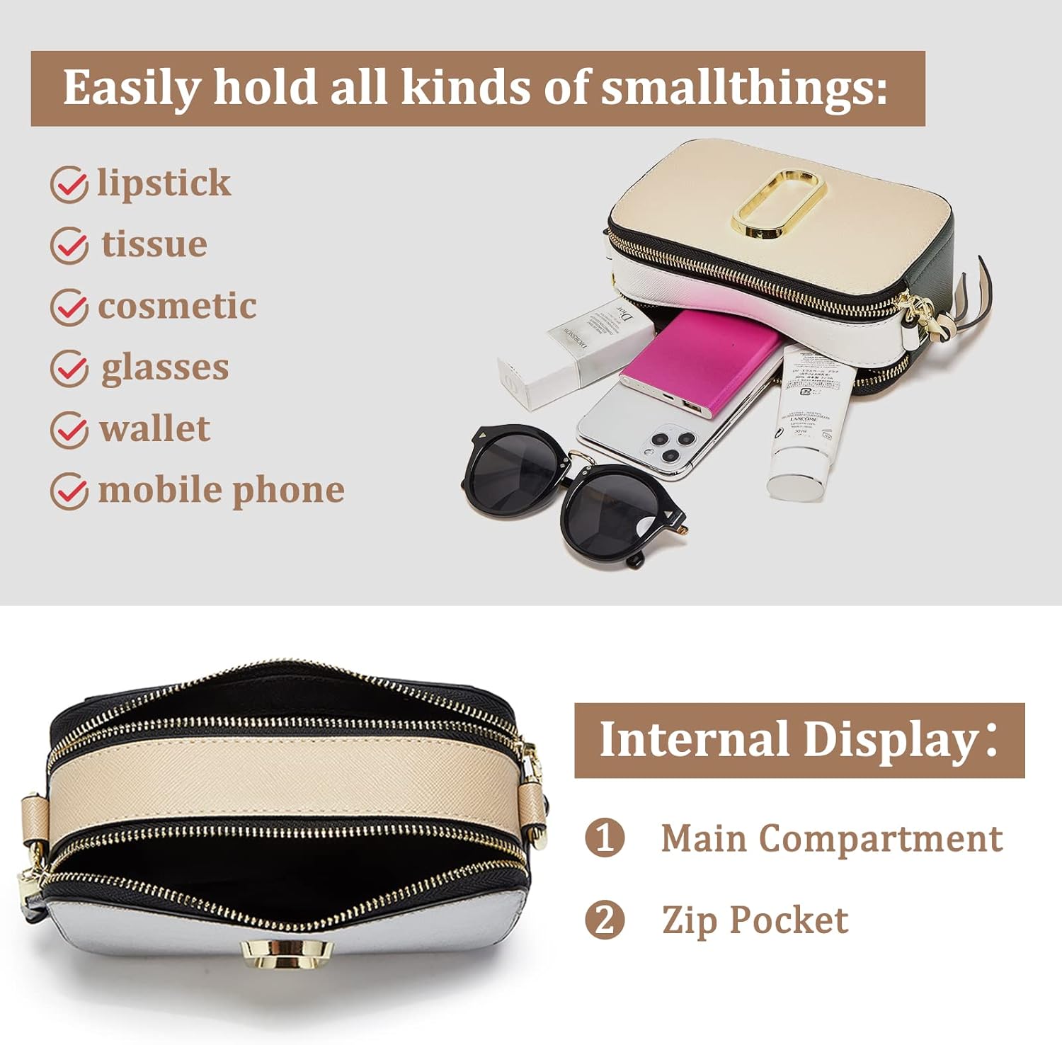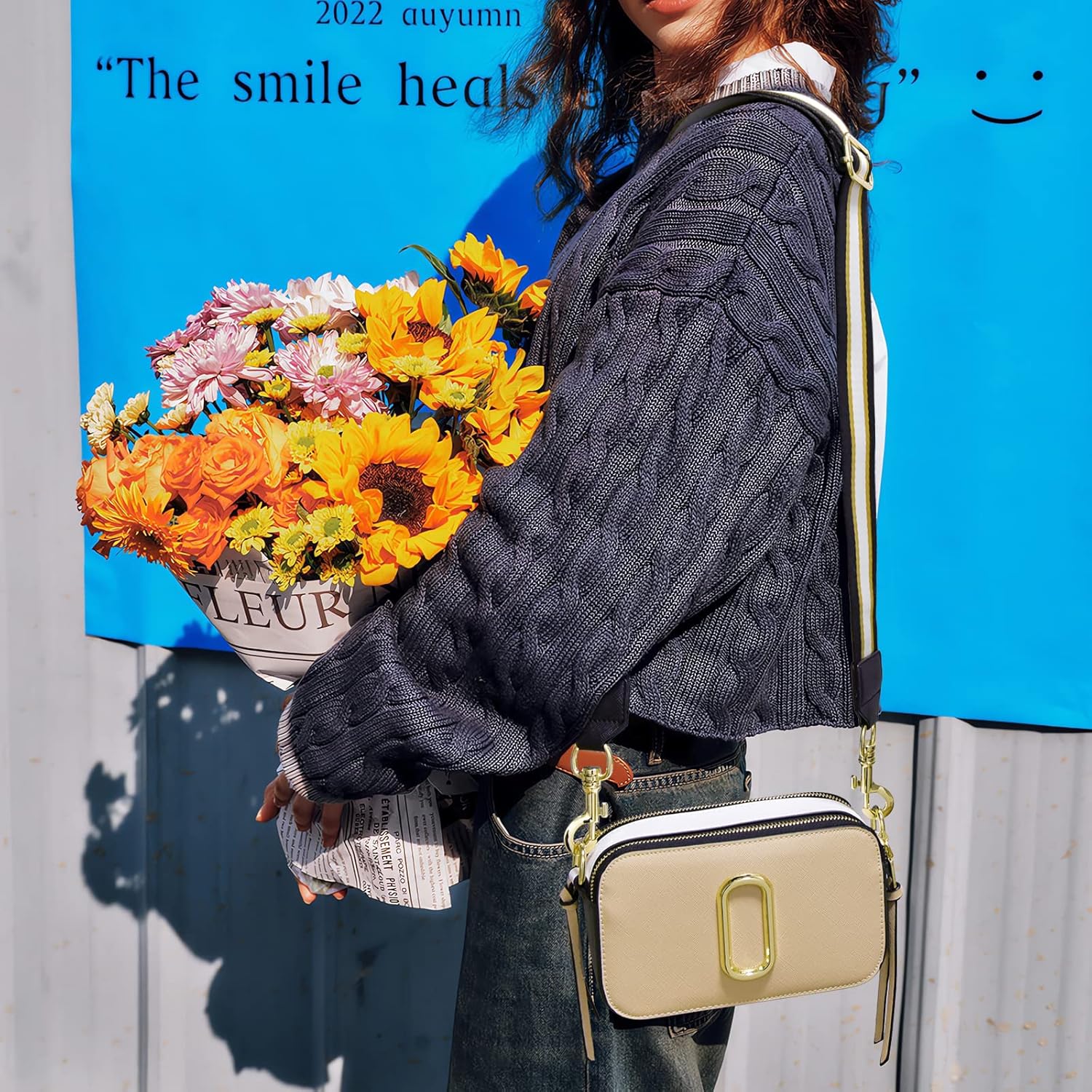 LJMBOEN Crossbody Bags for Women Small Handbags Shoulder Bag Wide Strap Shoulder Handbag Camera Clutch Ladies Purses