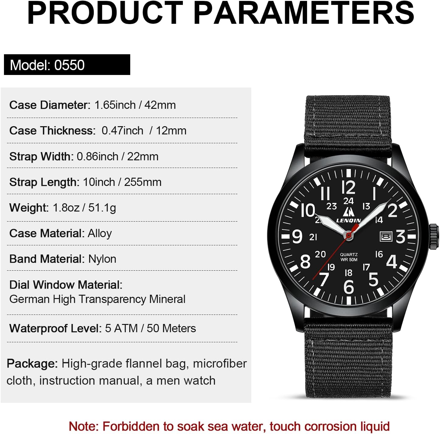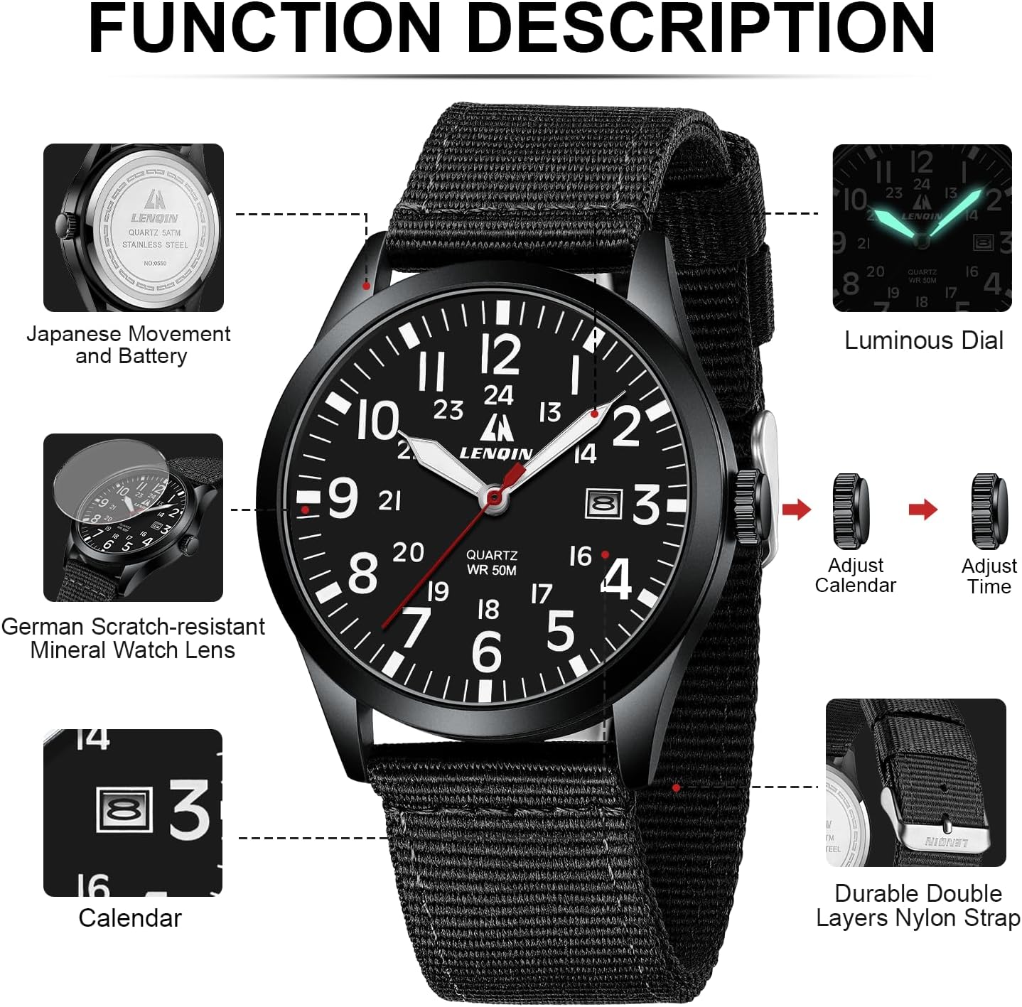 LN LENQIN Mens Watches Analog Quartz Watches Daily Waterproof Wrist Watches for Men Light Simple Field Watch with Date