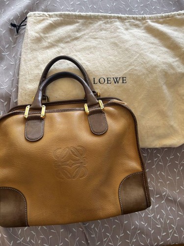 LOEWE Amazona Leather Mini Boston Bag Handbag Beige Used W/Storage Bag F/S