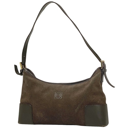LOEWE Vintage Anagram Shoulder Bag Brown Suede
