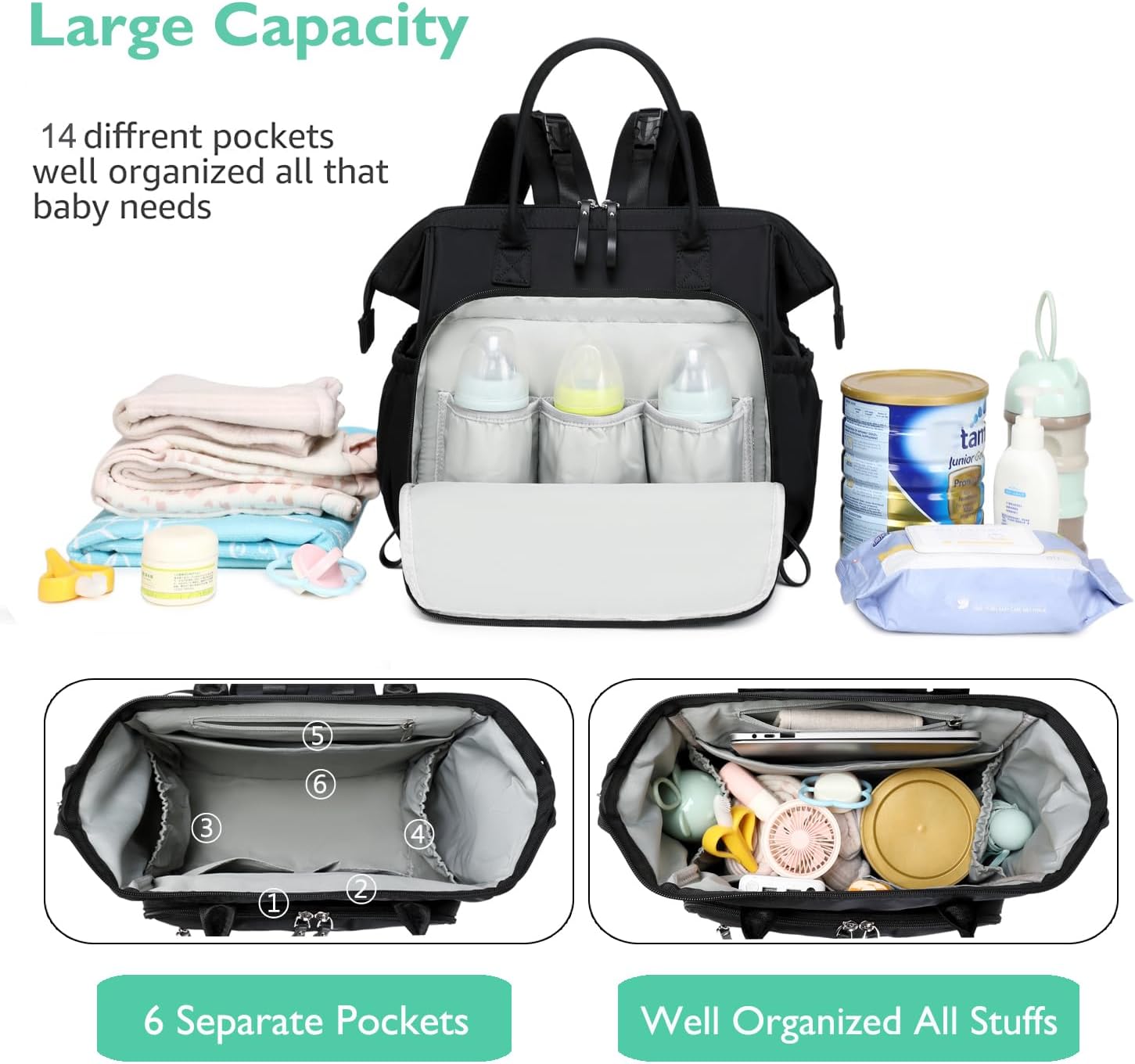 LORADI Convertible Diaper Bag Tote, Water-Resistant Diaper Backpack with Anti-theft Pockets and Stroller Clips