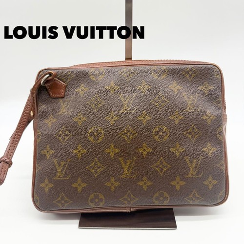 LOUIS VUITTON PVC Leather Clutch Bag Dark Brown with Monogram Made in France