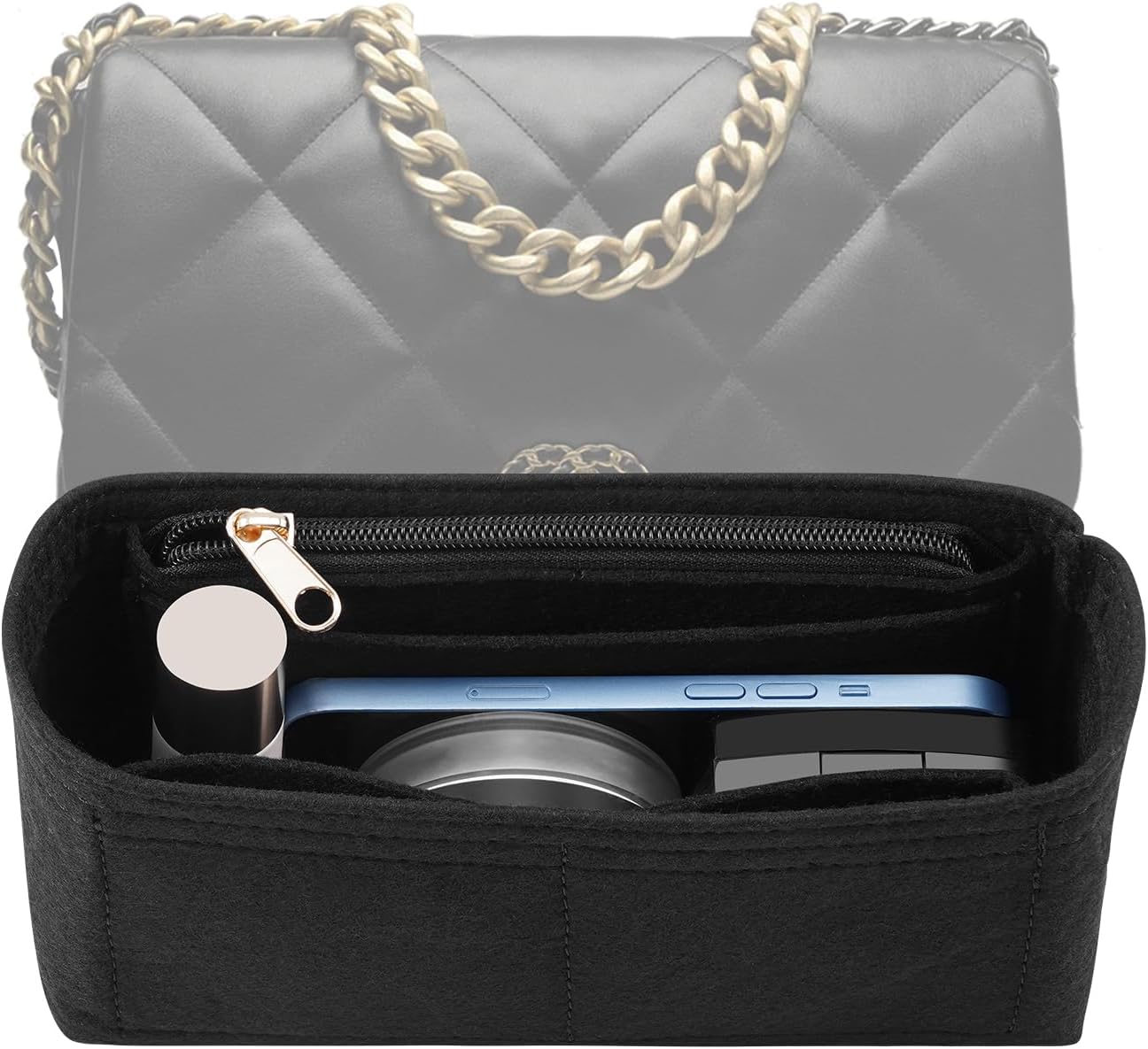 LOUKAYCCI Purse Organizer Insert for CHANEL 19 Flap Bag Organizer Insert Handbag (Black, Small)