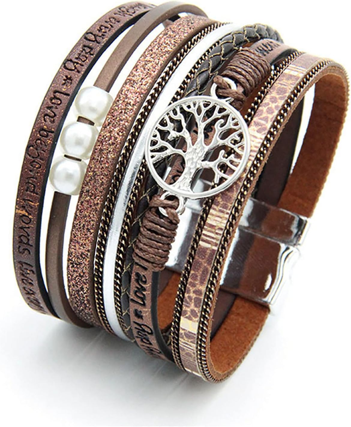Luluadorn Tree of Life Leather Wrap Bracelet Women Colorful Multi-Layer Wrapped Wristband Bracelets